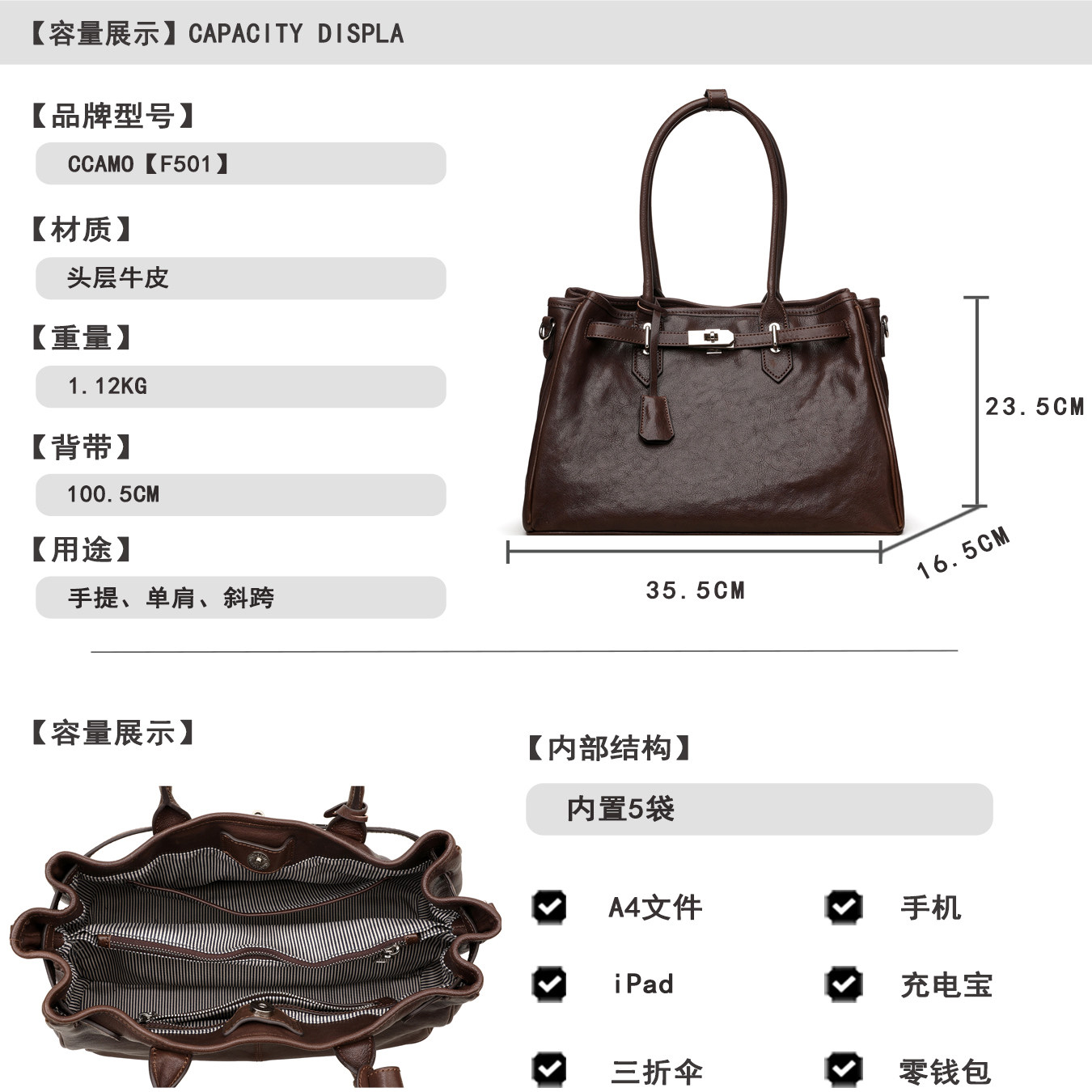 CCAMO托特包轻奢真皮通勤包百搭