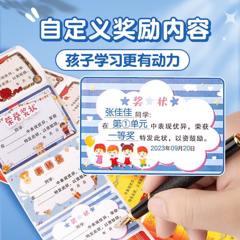 儿童迷你小奖状贴纸小学生考试进步表扬贴幼儿园小朋友无痕可粘贴创意奖状贴多彩手写奖章鼓励孩子学习小贴画