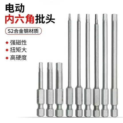 内六角批头带磁性加长S2强磁风批气动起子头电动螺丝刀电批头方头