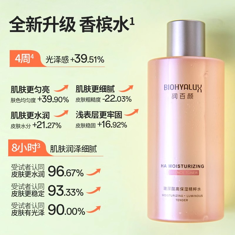 润百颜玻尿酸高保湿精粹水300ml烟酰胺提亮补水湿敷爽肤水香槟水