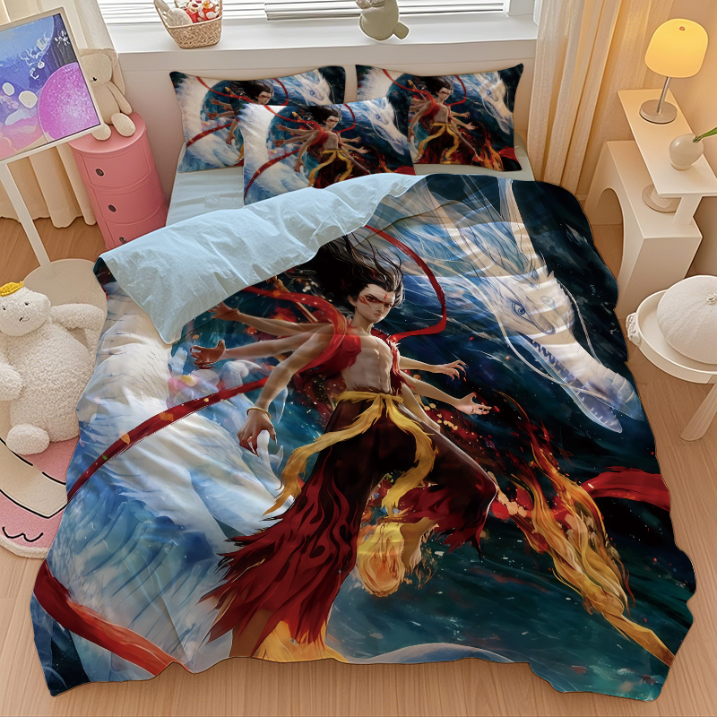 哪吒电影周边卡通床品3四件套学生宿舍申公豹敖丙儿童房被套敖光2