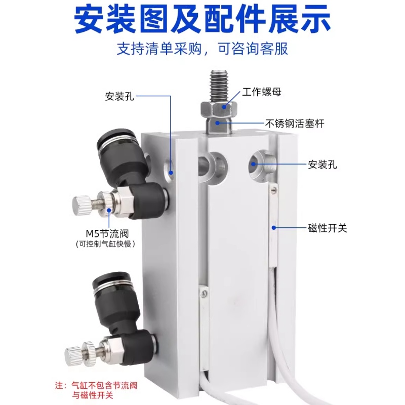SMC正品单动气缸CDU6-5S单作用带磁CDU10-10S小型自由缸CDU单杆T