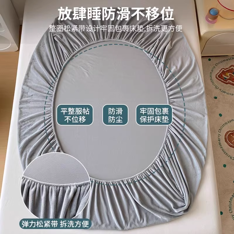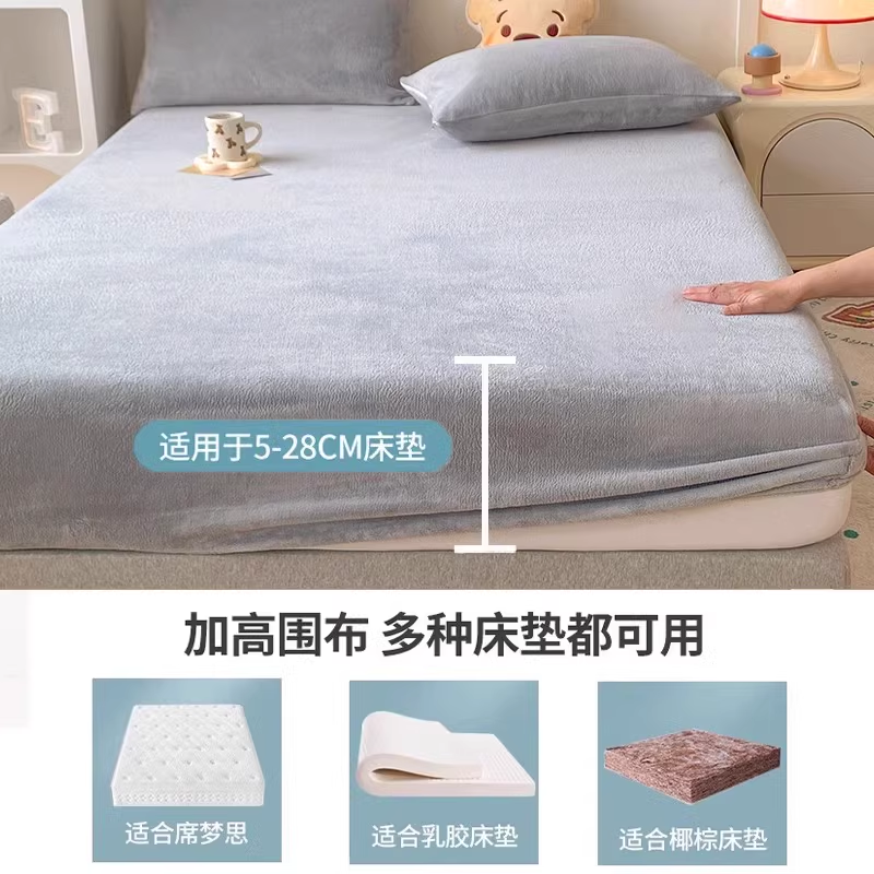 保暖牛奶绒床笠单件冬季加厚珊瑚绒床垫保护罩全包床套防水防滑