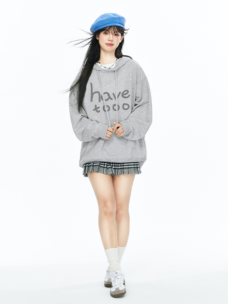 Peach Shop灰色字母连帽卫衣女秋冬2025新款小众好看情侣帽衫外套