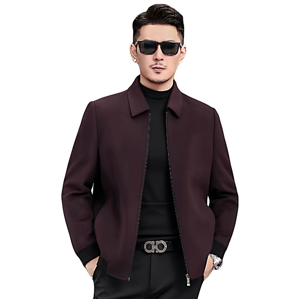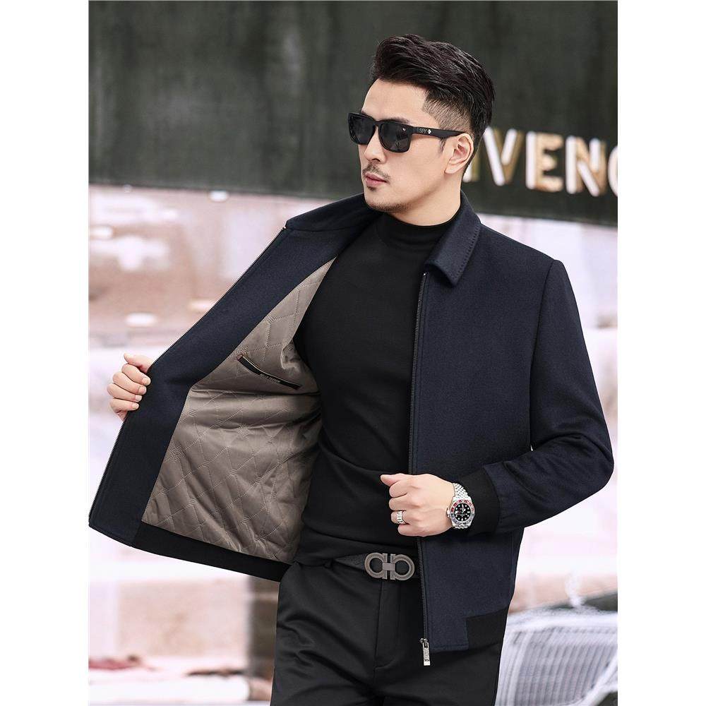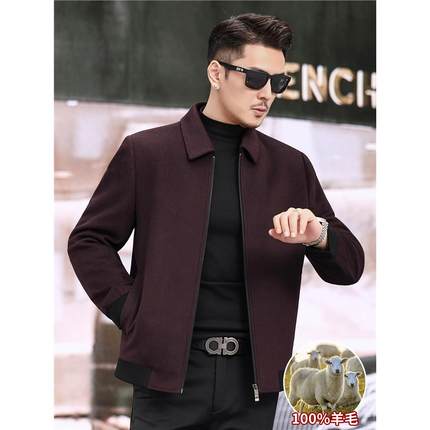 罗蒙高端100%纯羊毛夹克男士翻领毛呢外套中青年爸爸秋冬羊绒呢子