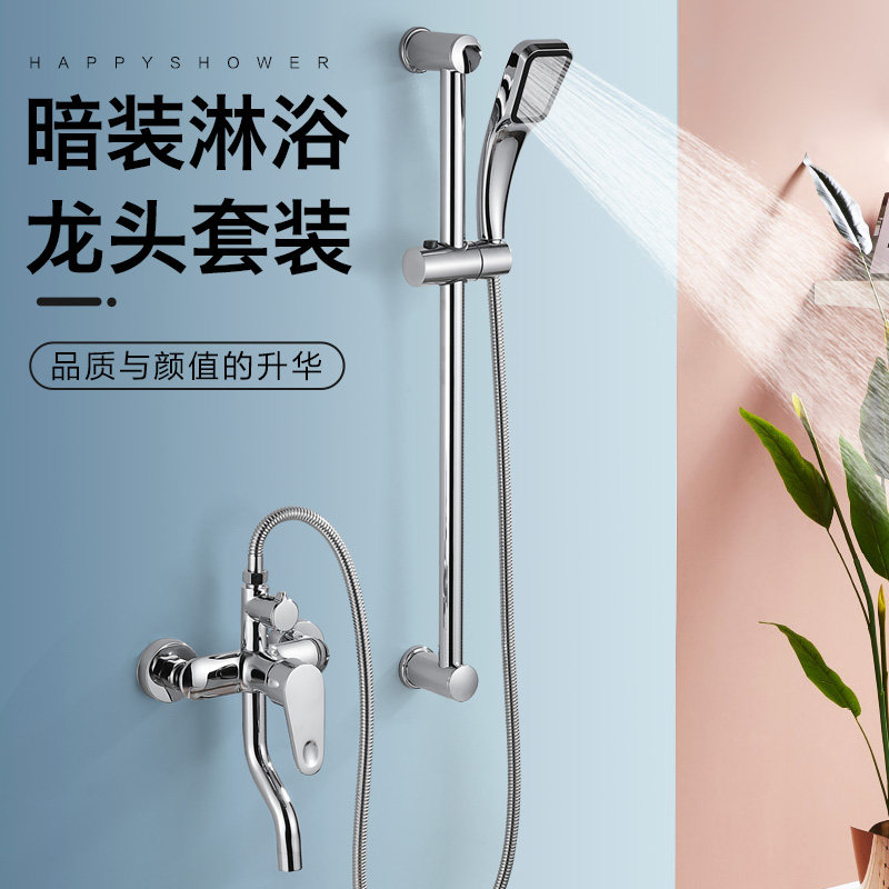 全铜淋浴龙头浴室洗澡混水阀开关暗装冷热二档花洒套装浴缸水龙头