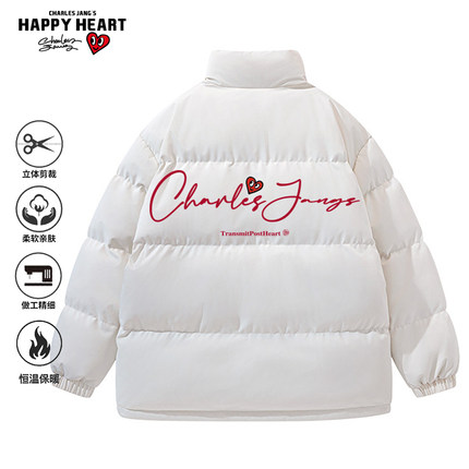 查尔斯桃心秋冬新款个性字母立领休闲棉服男御寒加厚保暖棉袄棉衣