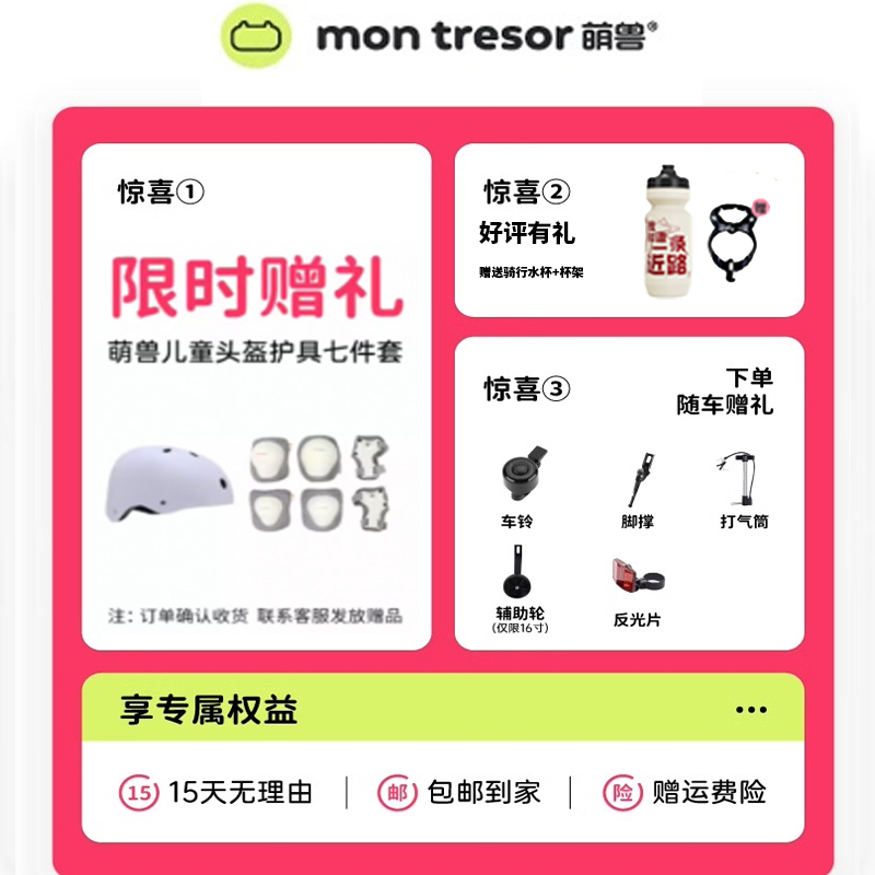 【现货】montresor萌兽超轻儿童自行车男童宝宝男女孩山地脚踏车