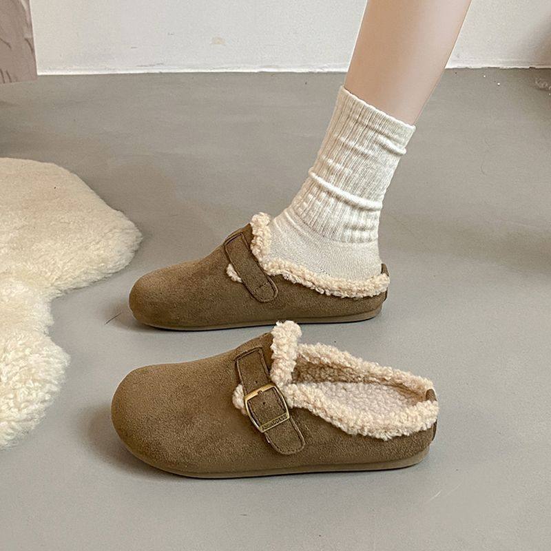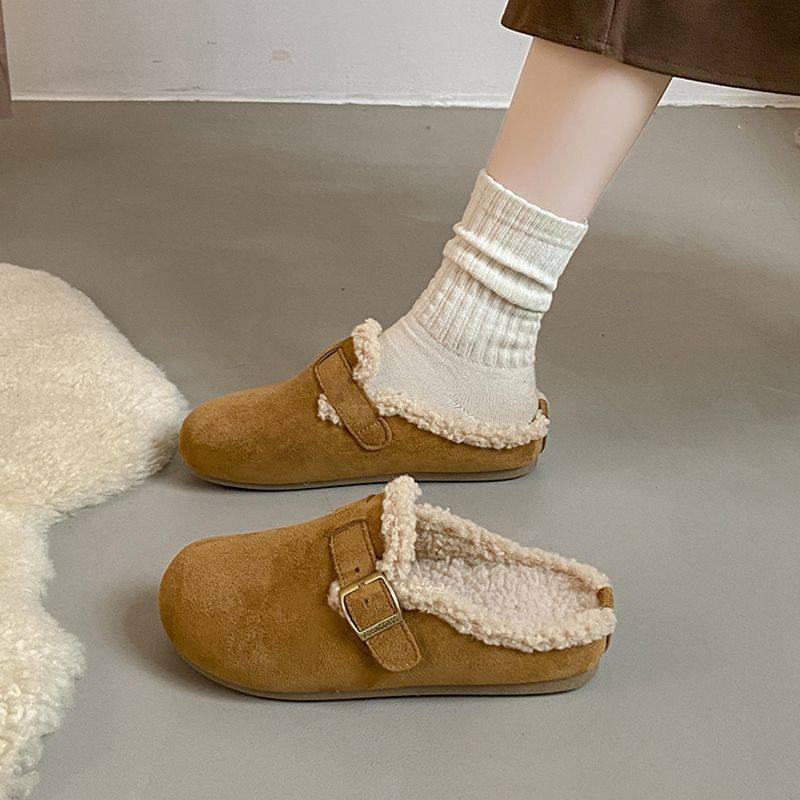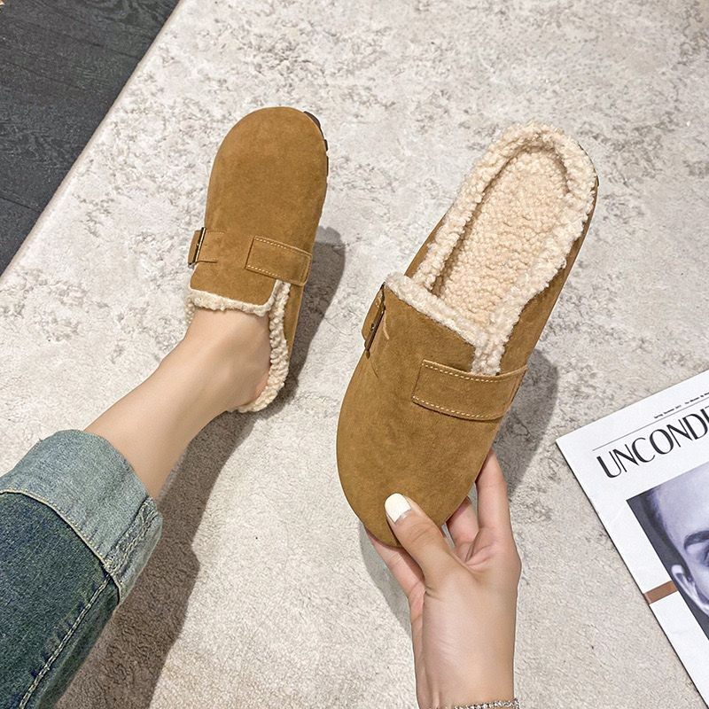 包头拖鞋女加绒2025秋冬新款懒人一脚蹬半拖鞋防滑平底勃肯棉拖鞋