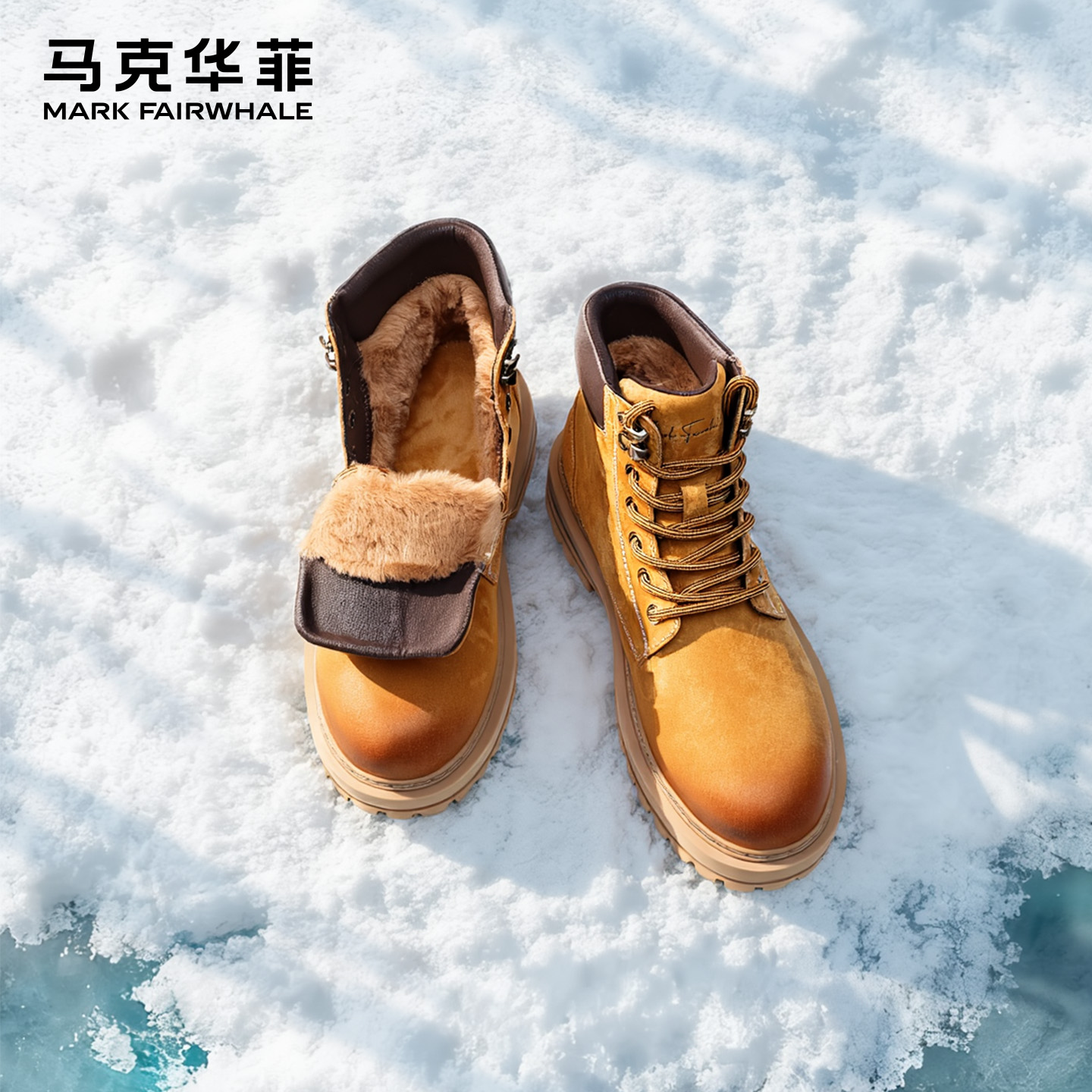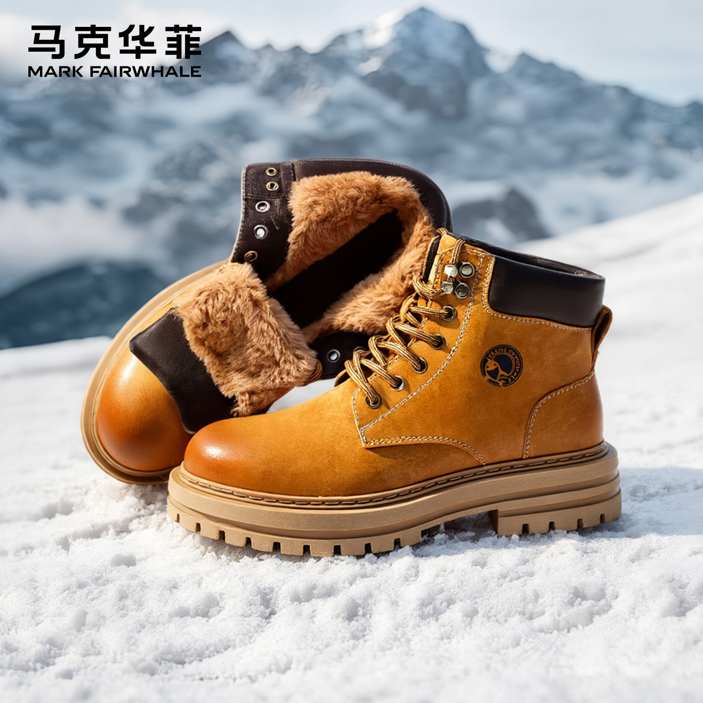 马克华菲马丁靴男冬季新款户外工装大黄靴加绒保暖棉鞋男士雪地靴