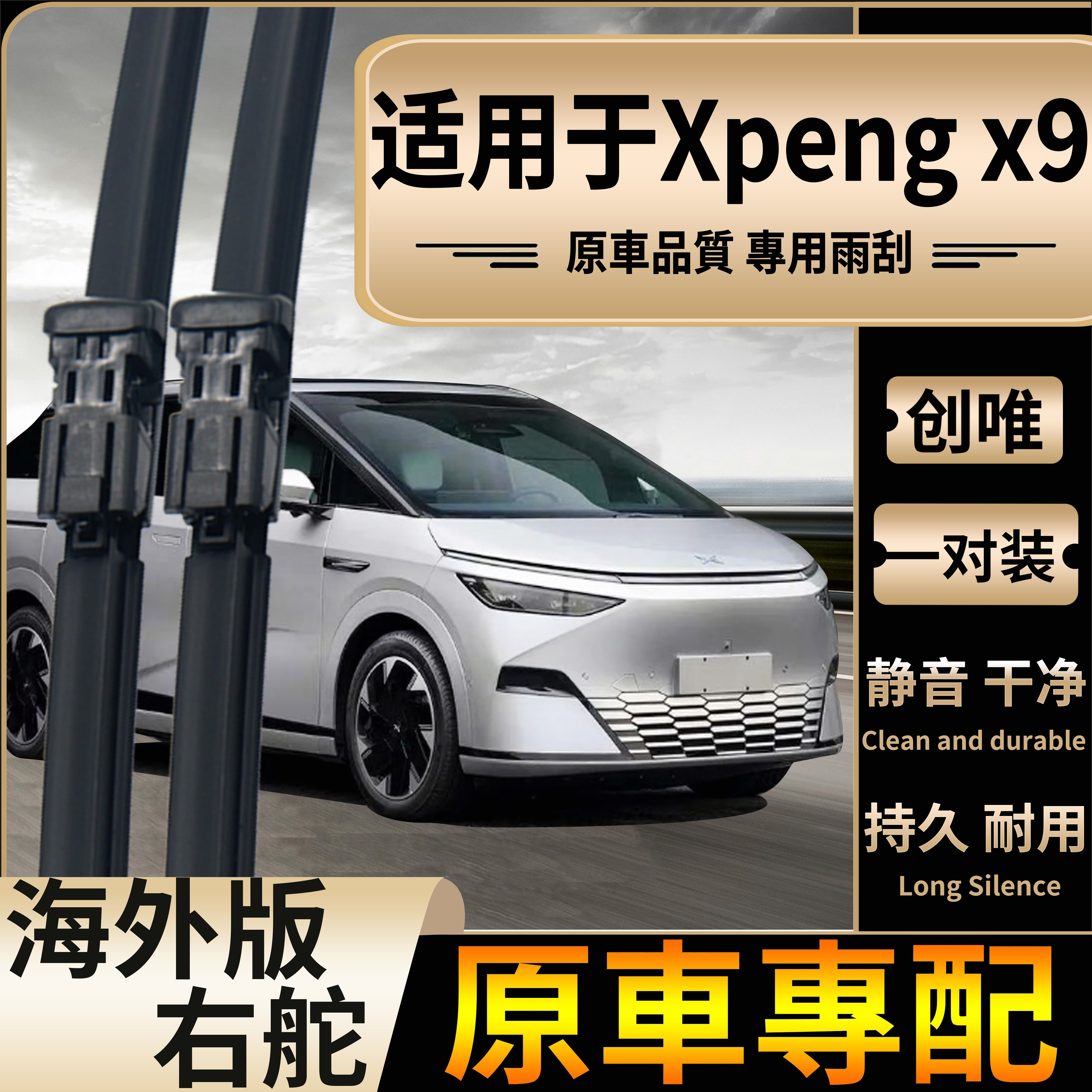 适用香港新加坡右舵Xpeng X9雨刮器海外版小鹏X9右钛前雨刷片静音