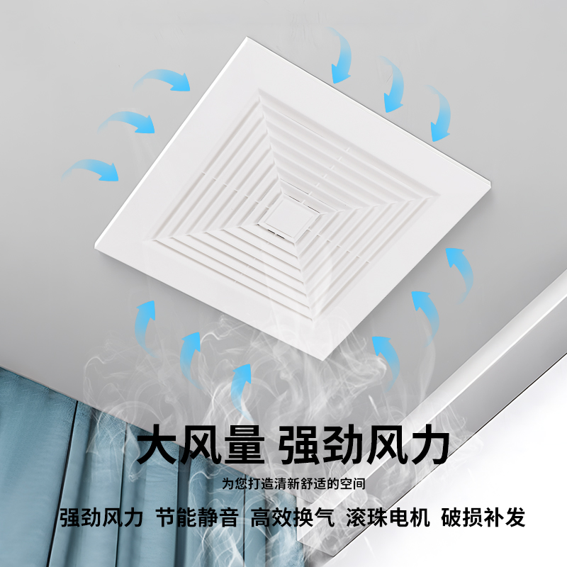 集成吊顶厨房卫生间换气扇300x300 天花板强力静音抽烟排风排气扇