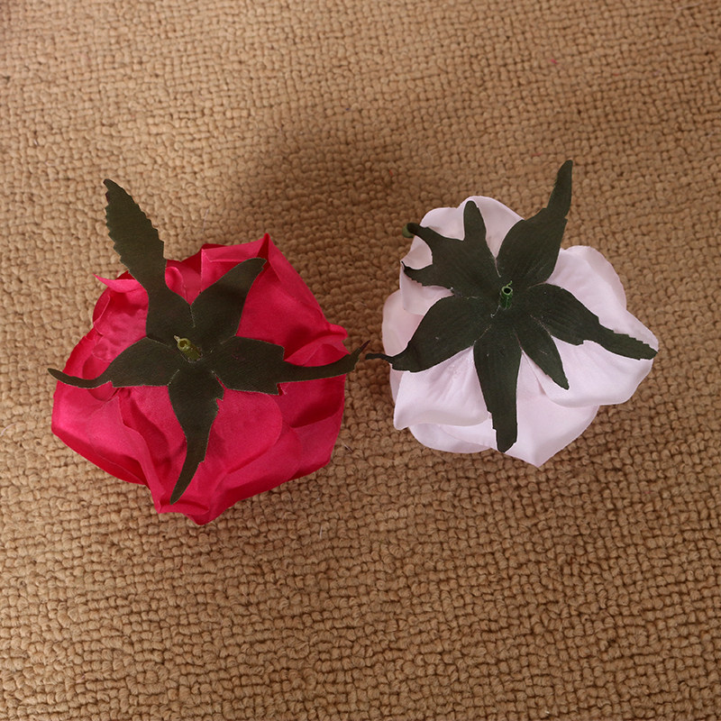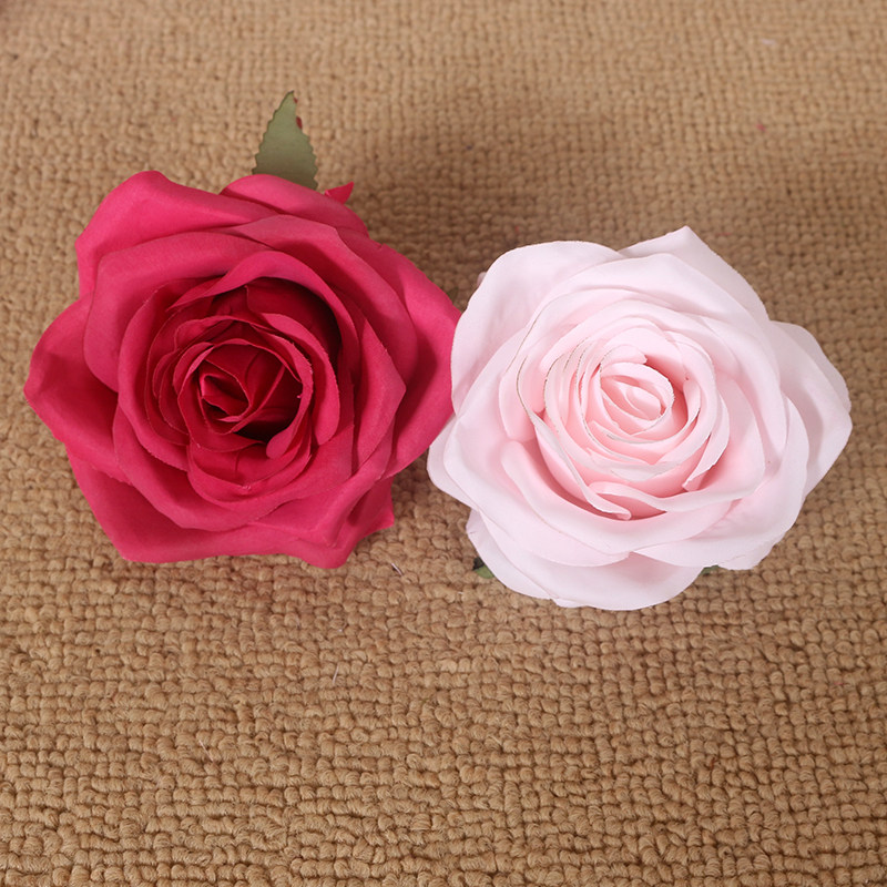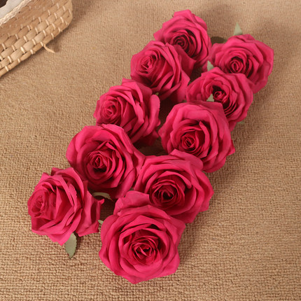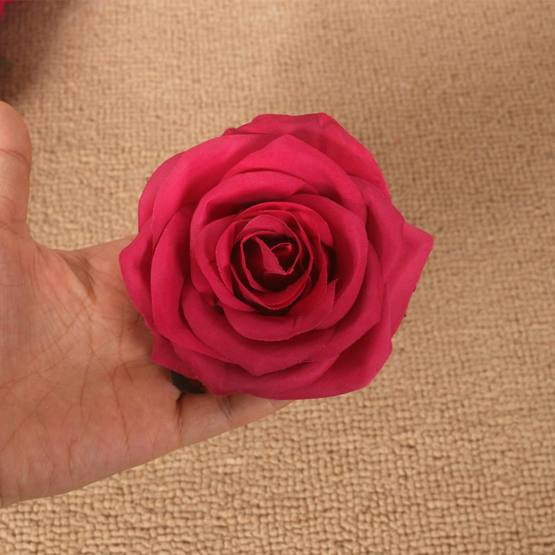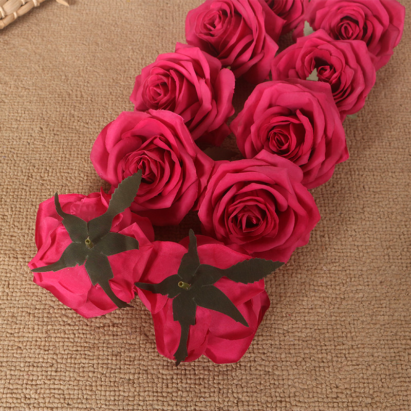 佛洛依德玫红色玫瑰花头仿真花蛋糕搭配装饰绢布假花朵 花墙diy花