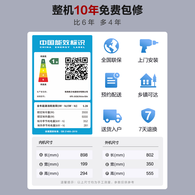 【Gree/格力官方】新一级能效变频冷暖正1.5匹除菌空调挂机风赏