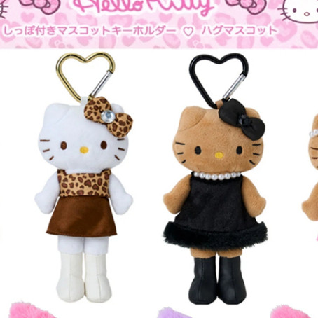 现货 日本三丽鸥NIC 长腿黑裙豹纹黑皮Kitty 小尾巴爱心扣挂件