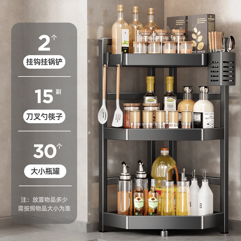 厨房置物架家用台面转角三角架子调料品盐调味罐多层调.味料收纳