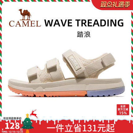 【踏浪】骆驼运动凉鞋女2025夏季女鞋防滑软底沙滩鞋女魔术贴鞋子