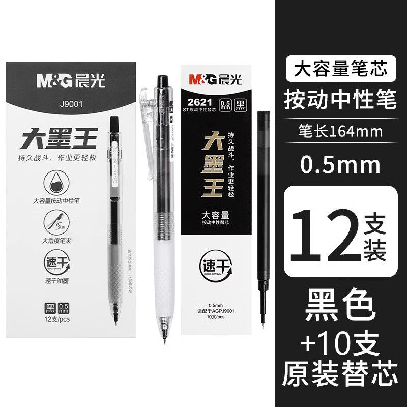 晨光大墨王按动中性笔st笔大容量
