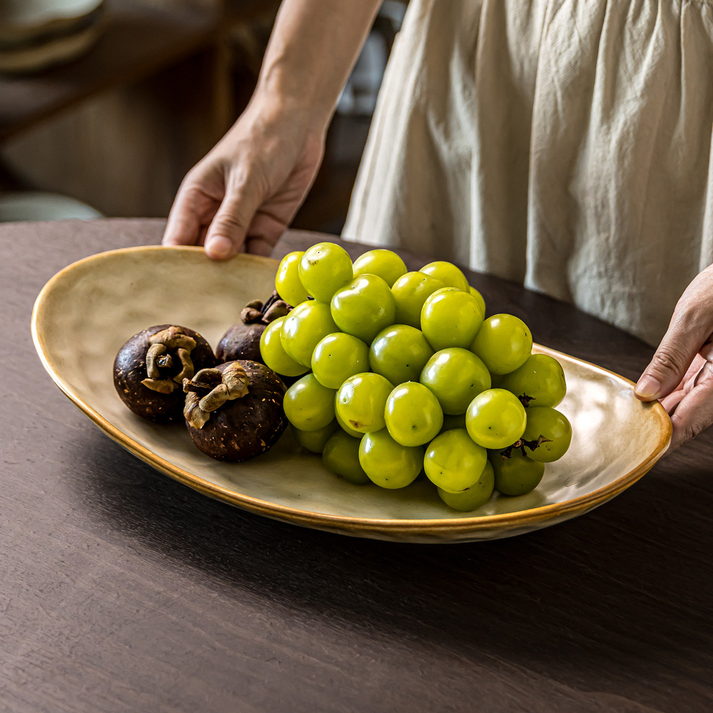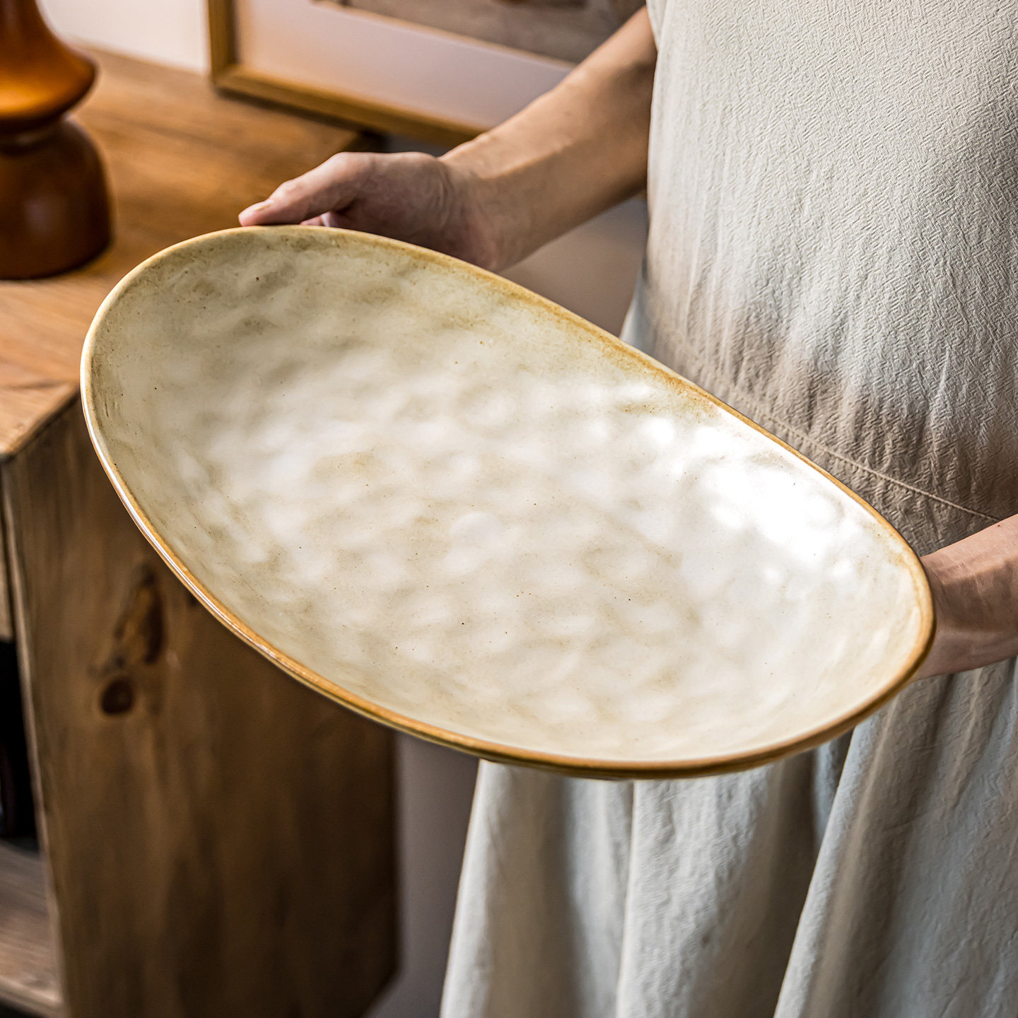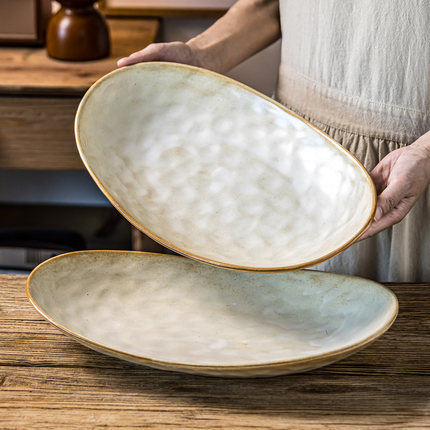 日式粗陶异形椭圆盘子家用菜盘水果盘鱼盘沙拉盘特色点心盘海鲜盘