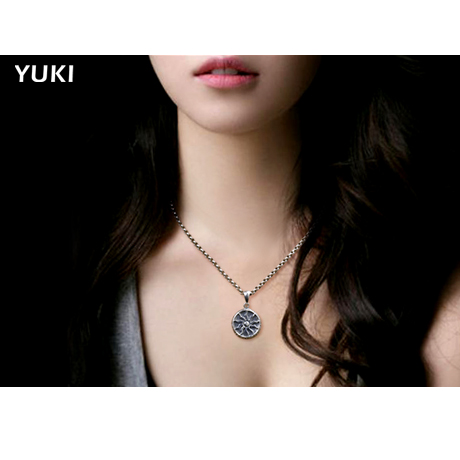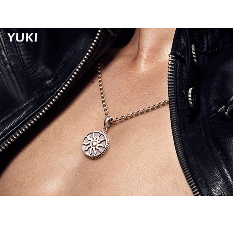 YUKI男士925纯银项链复古太阳吊坠圆牌潮牌女百搭链子INS小众气质