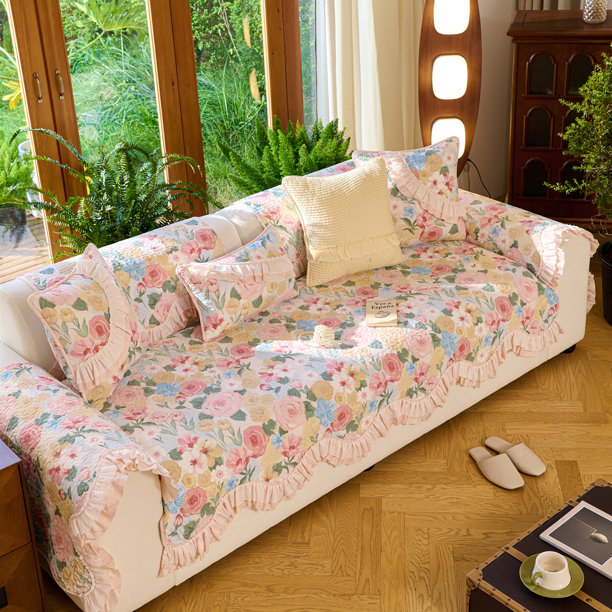 木耳边斜纹纯棉夹棉沙发垫子布艺四季通用田园奶油风防滑座垫机洗