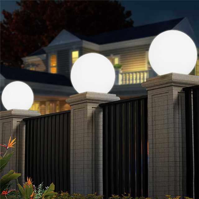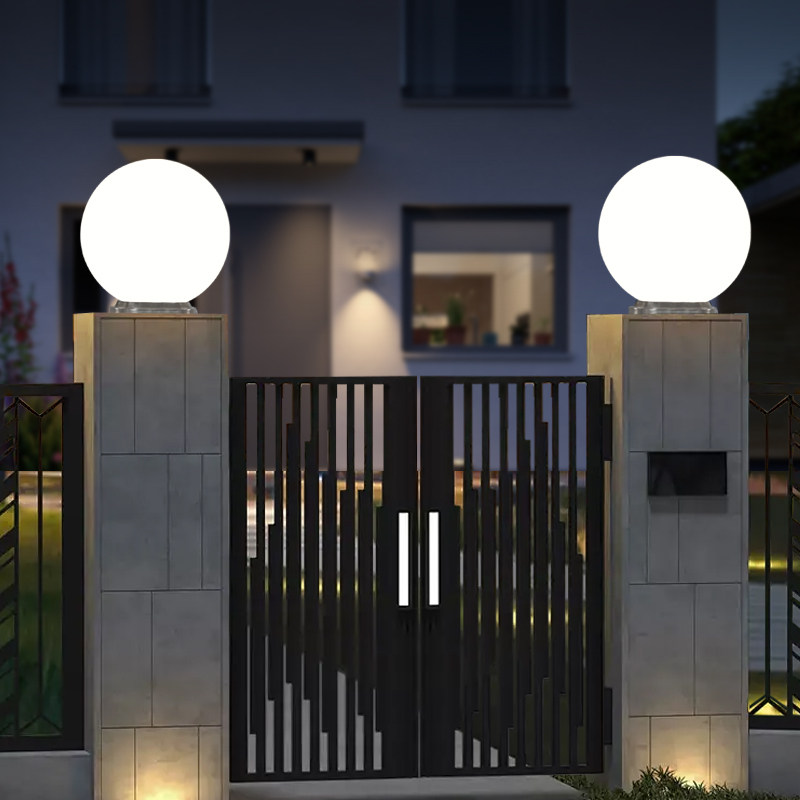 新款太阳能围墙圆形柱头灯别墅庭院门柱灯户外防水大门球形柱顶灯