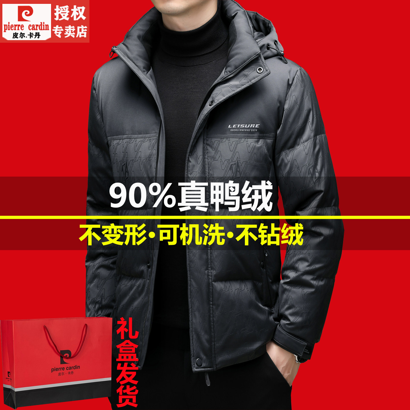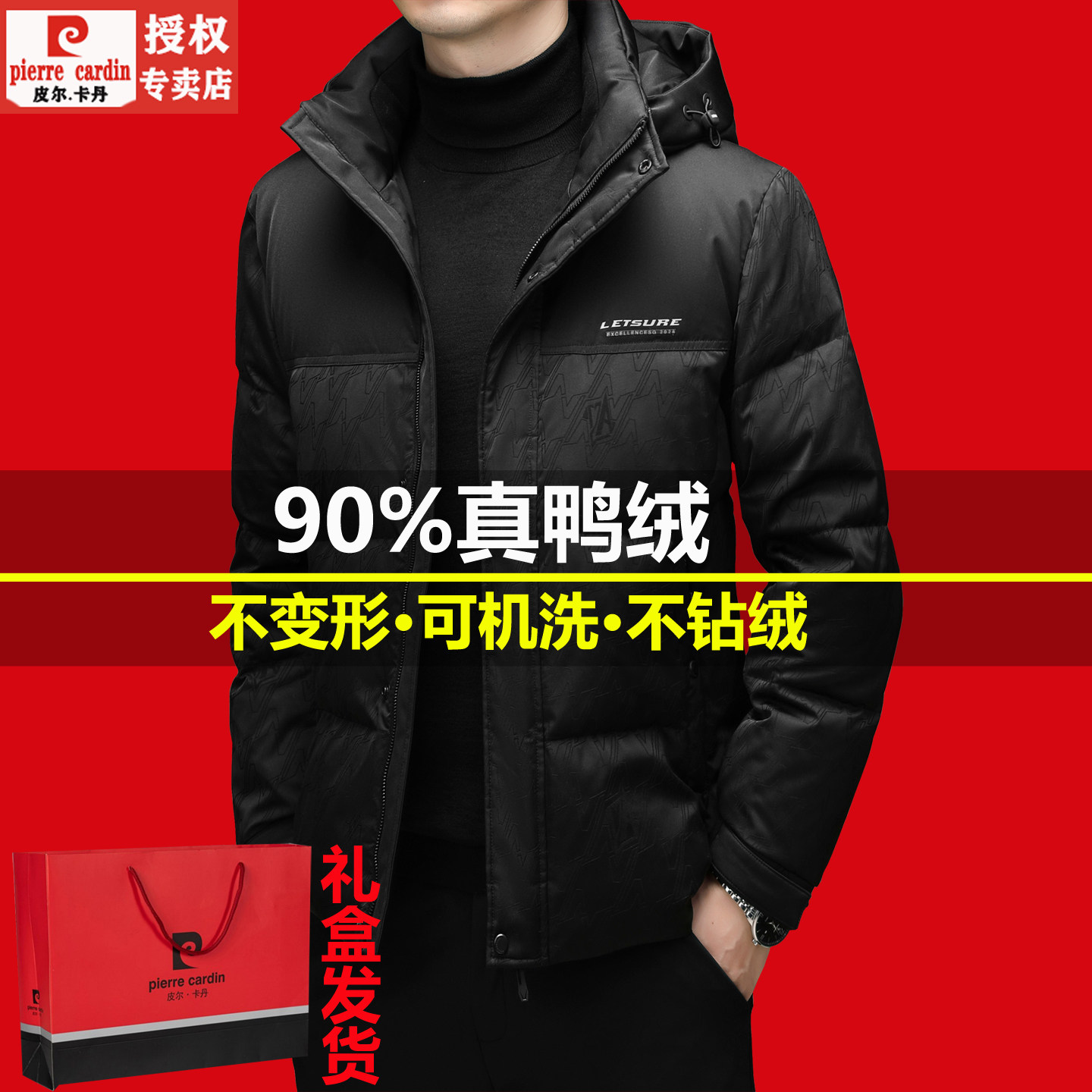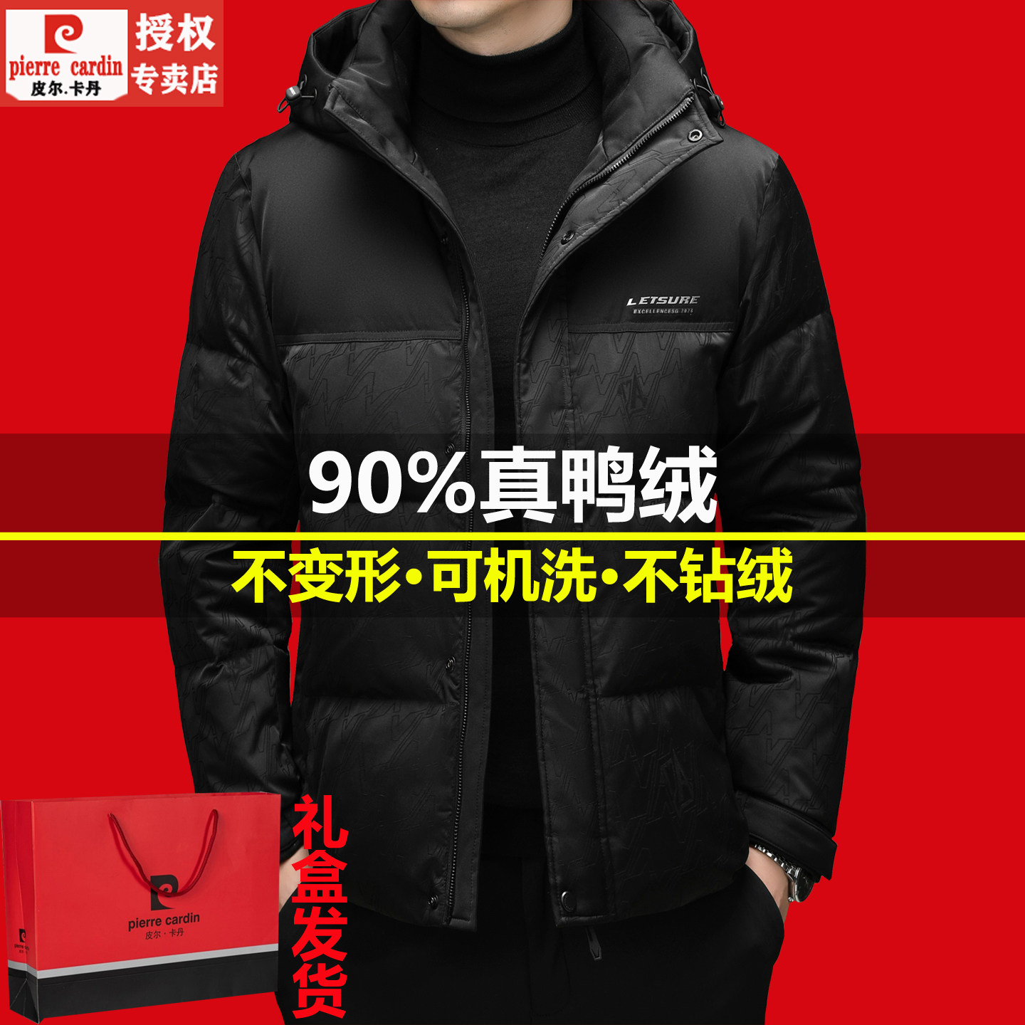 皮尔卡丹羽绒服男士冬季新款保暖抗寒可卸连帽短款加厚白鸭绒外套