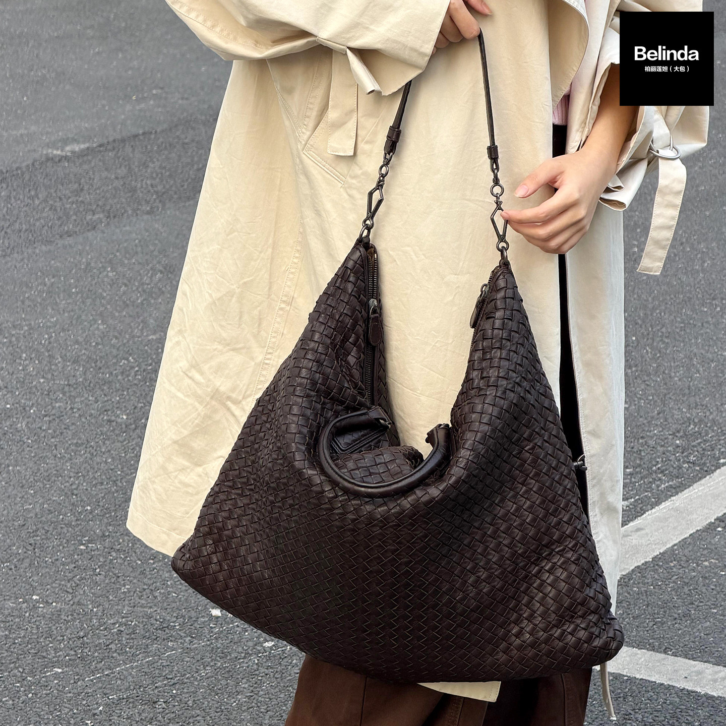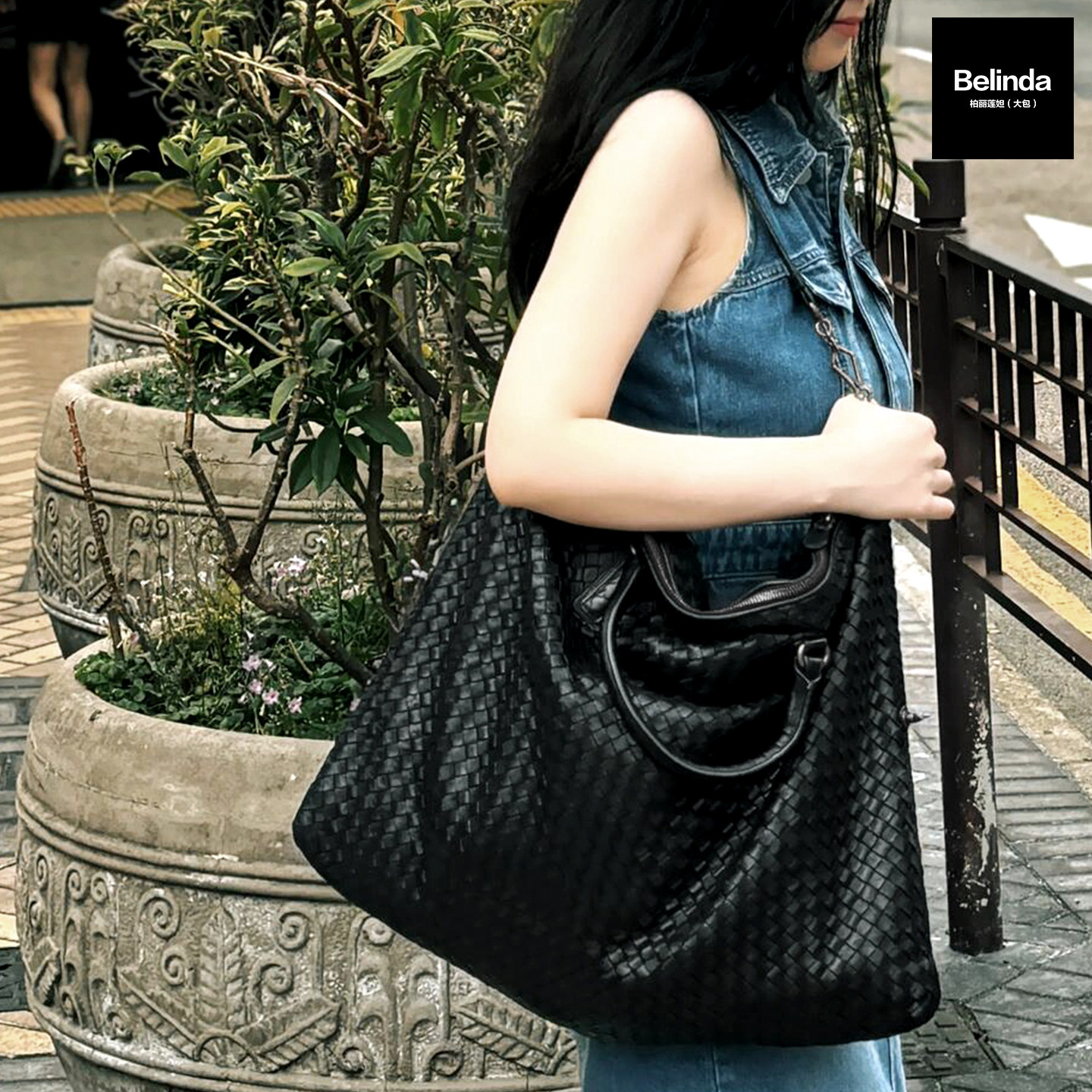 新款真皮羊皮编织百搭大容量托特包手提单肩腋下复古休闲通勤女包