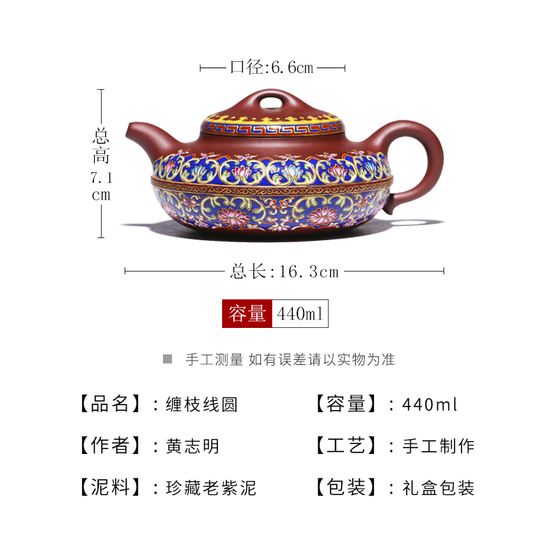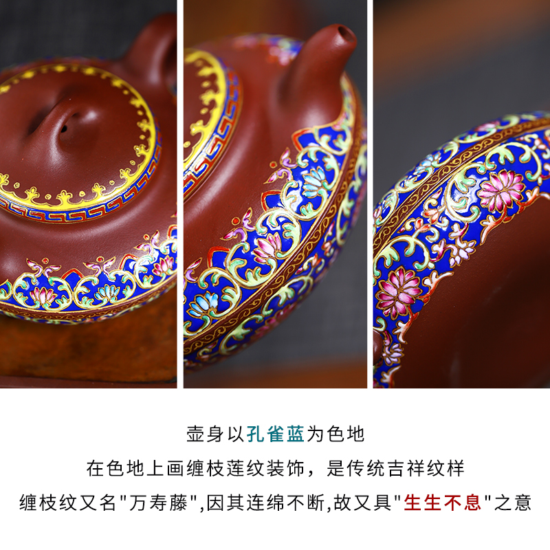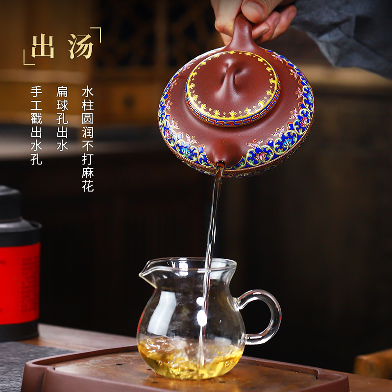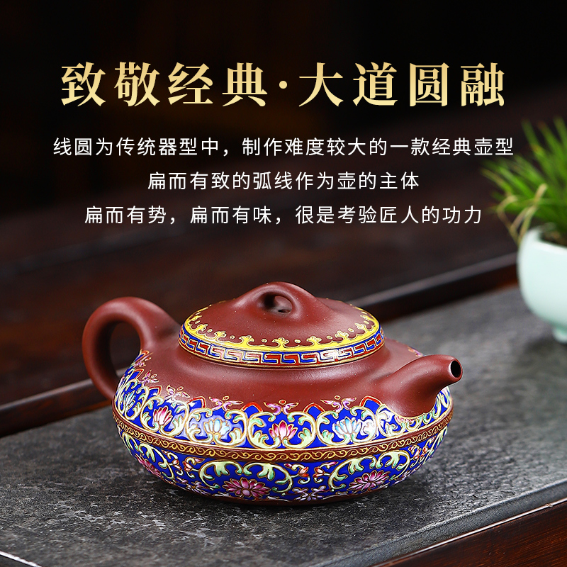 宜兴紫砂壶名家原矿紫泥纯手工泡茶壶功夫茶具单壶珐琅彩线圆壶大