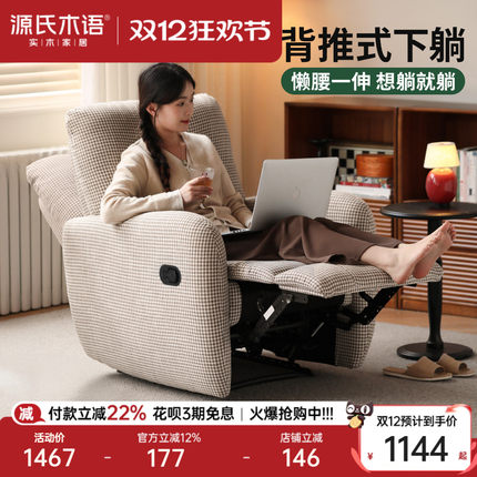 源氏木语布艺沙发椅客厅现代简约单人椅阳台小户型千鸟格伸缩躺椅
