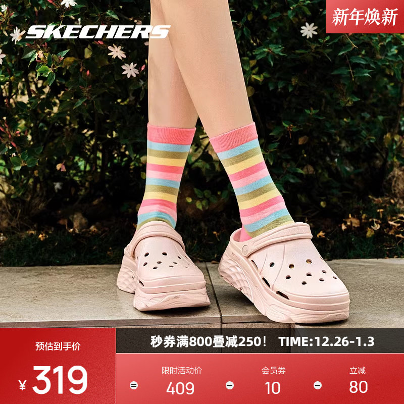 斯凯奇细闪洞洞鞋女子新款厚底休闲鞋运动沙滩凉鞋舒适百搭