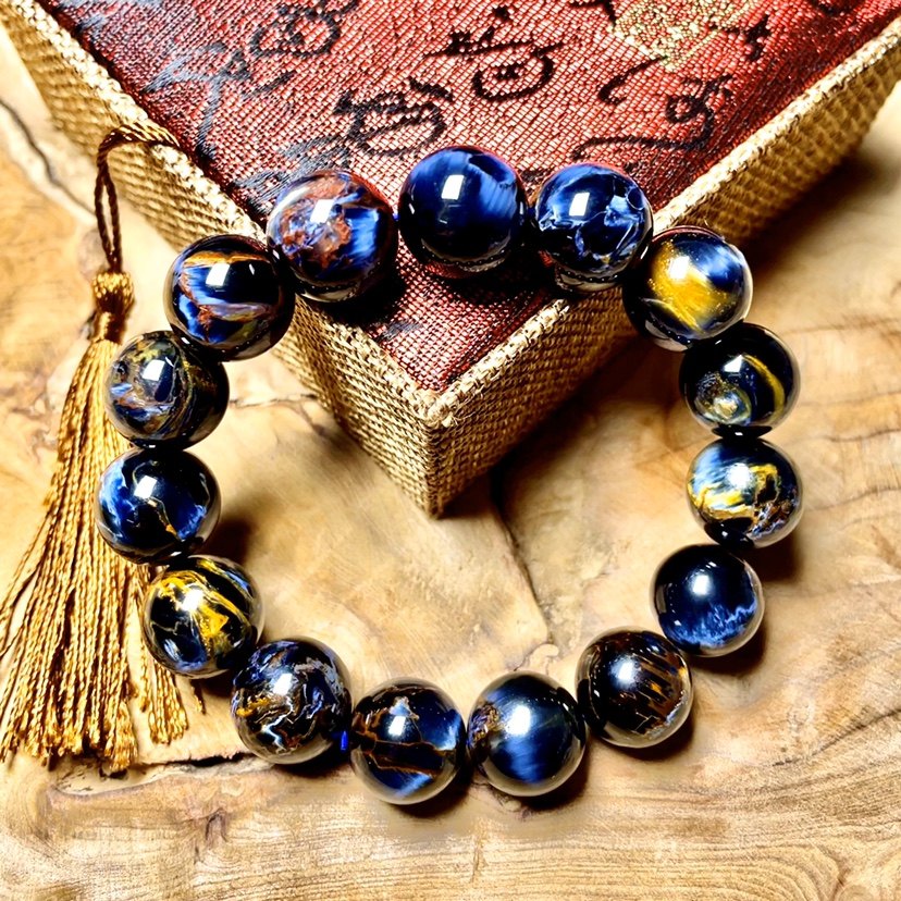 彼得石手链油画龙鳞纹手串男女深蓝色猫眼暴风雨宝石地球纹虎睛玉