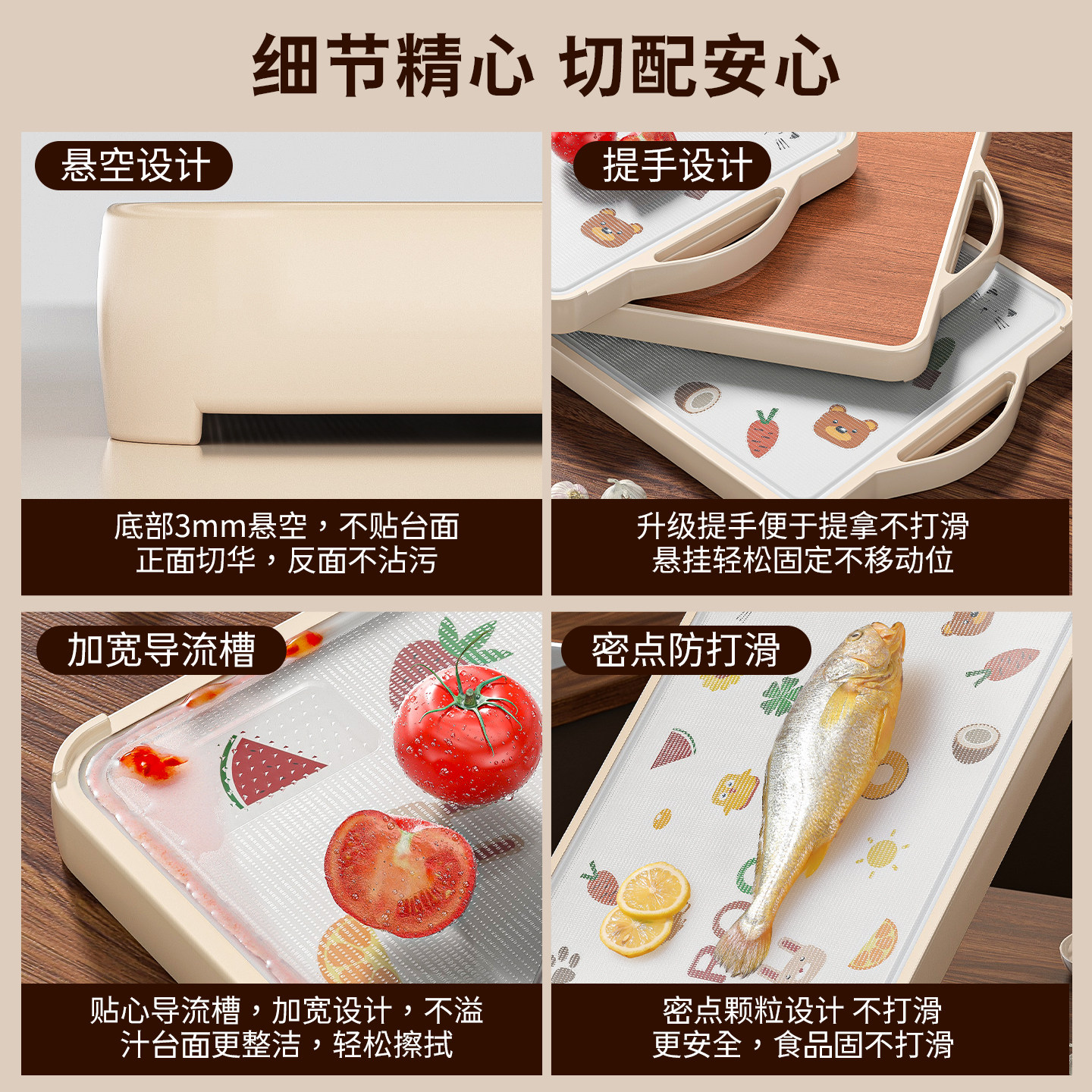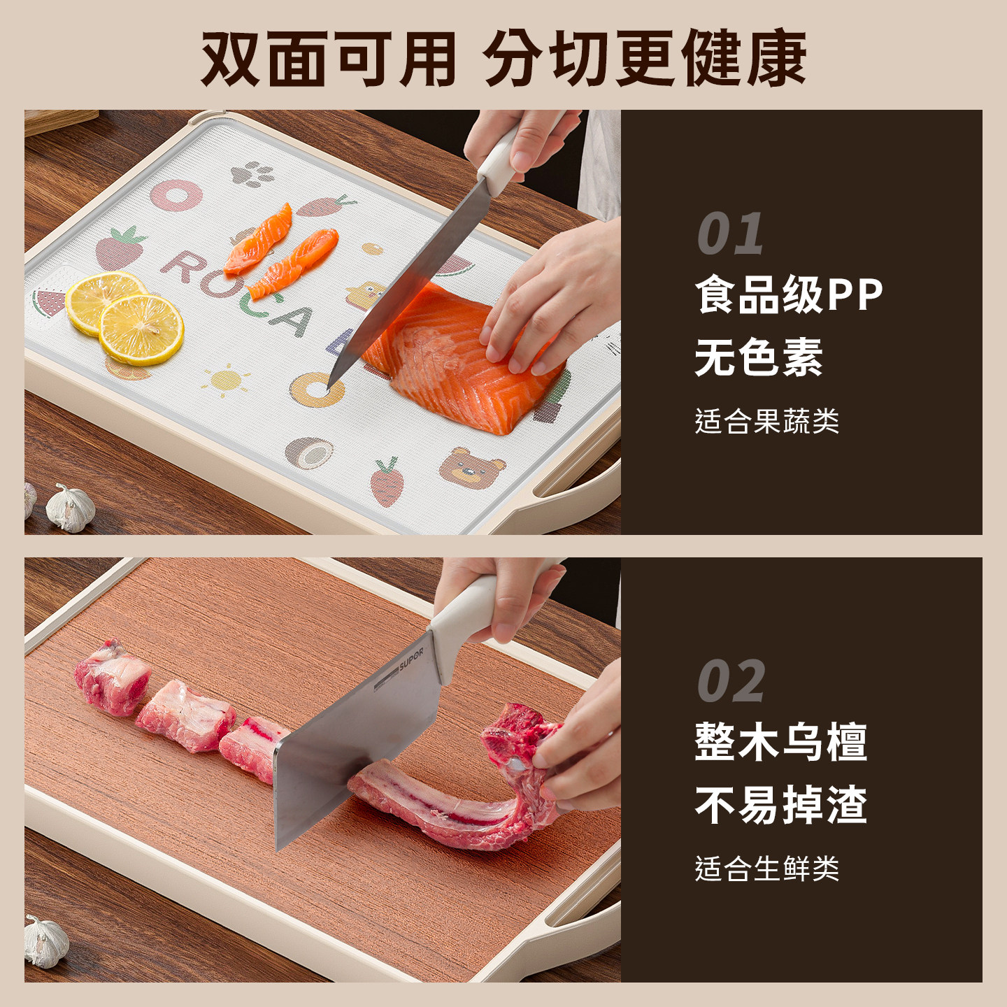 乌檀木菜板抗菌防霉家用切菜板厨房专用案板水果砧板大号双面粘板