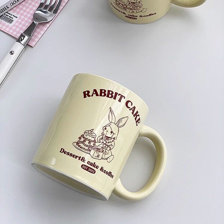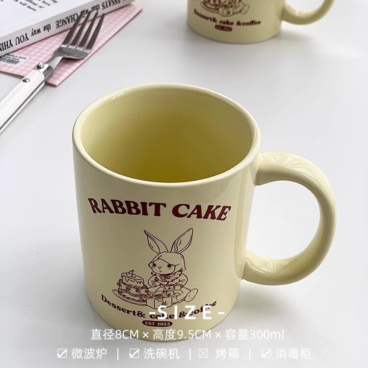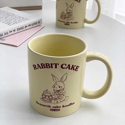 安木良品 韩国ins奶油复古蛋糕兔子陶瓷早餐水杯子咖啡牛奶马克杯
