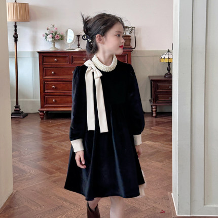 栀了成长记童装女童名媛风黑色加绒连衣裙秋冬2025新款儿童丝绒裙