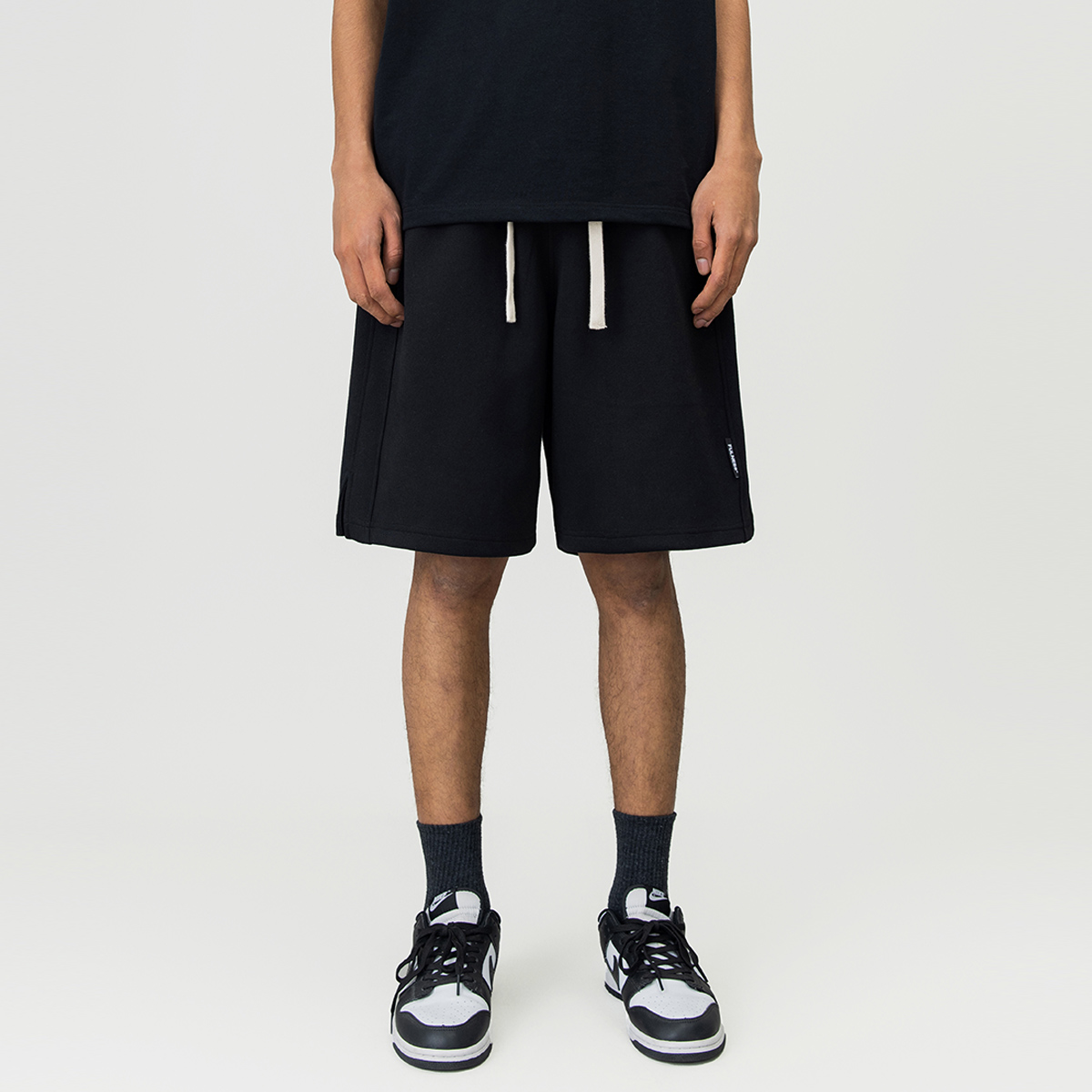潮牌侧边开叉抽绳短裤男