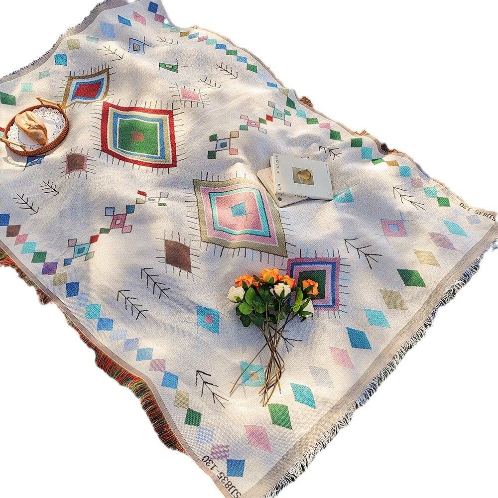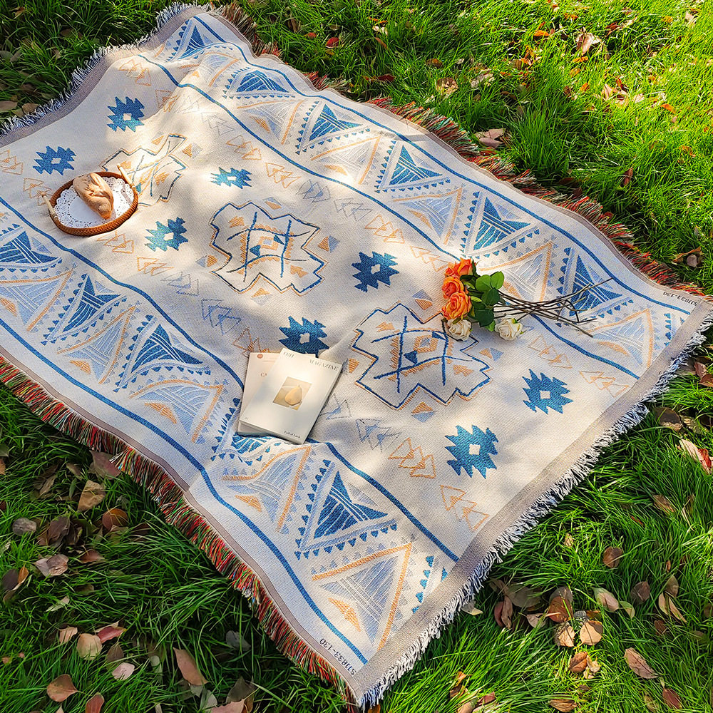 摩洛哥几何户外露营毯草坪地垫棉纱编织午睡盖毯帐篷防潮野餐垫子