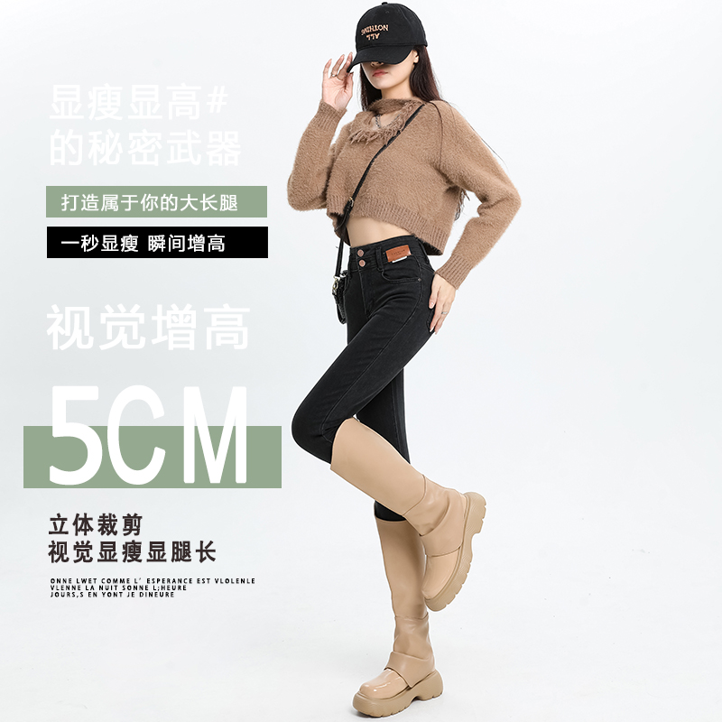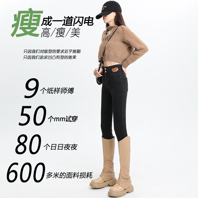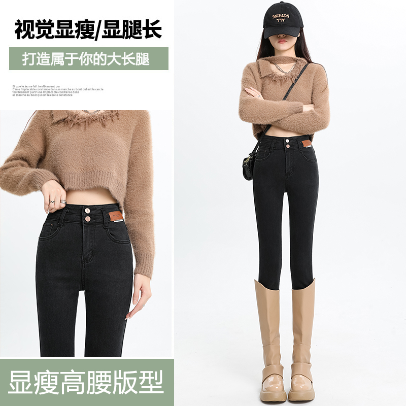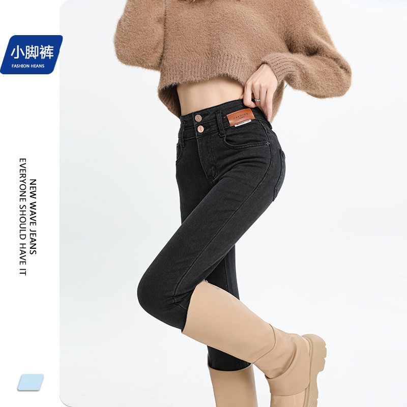 黑色小脚裤女2025秋冬新款设计感腰头皮牌个性排扣铅笔裤子