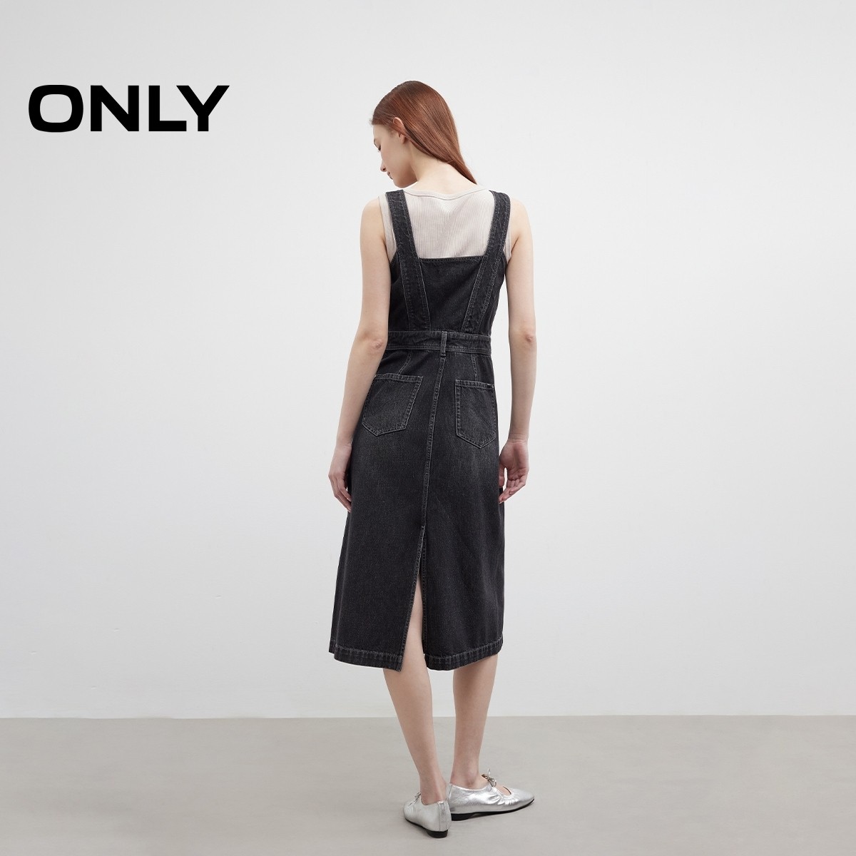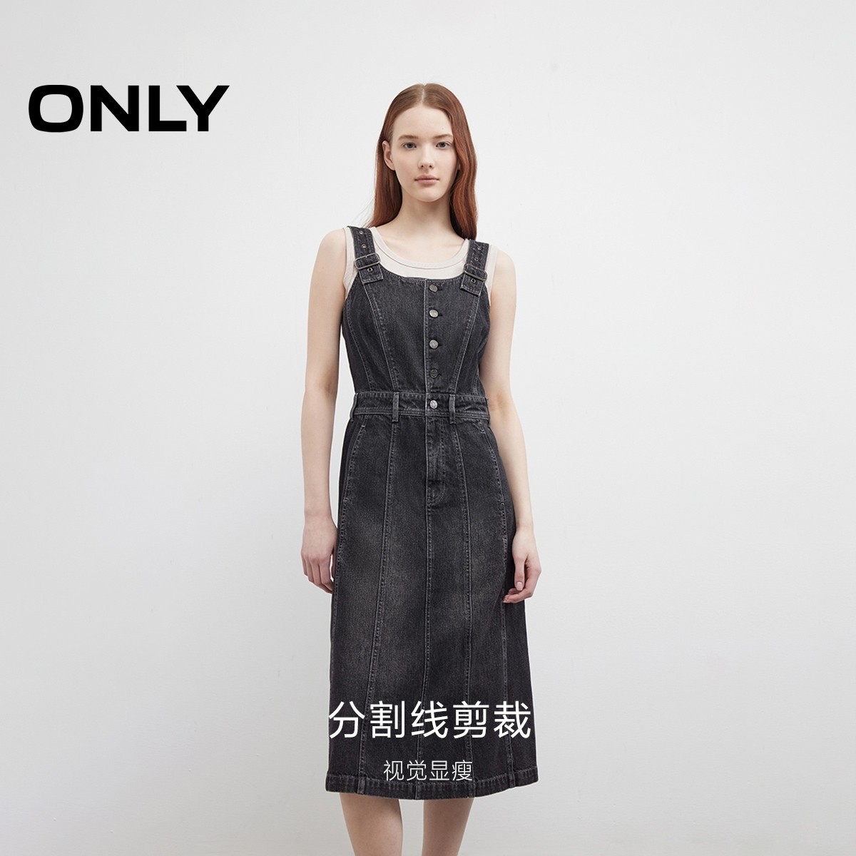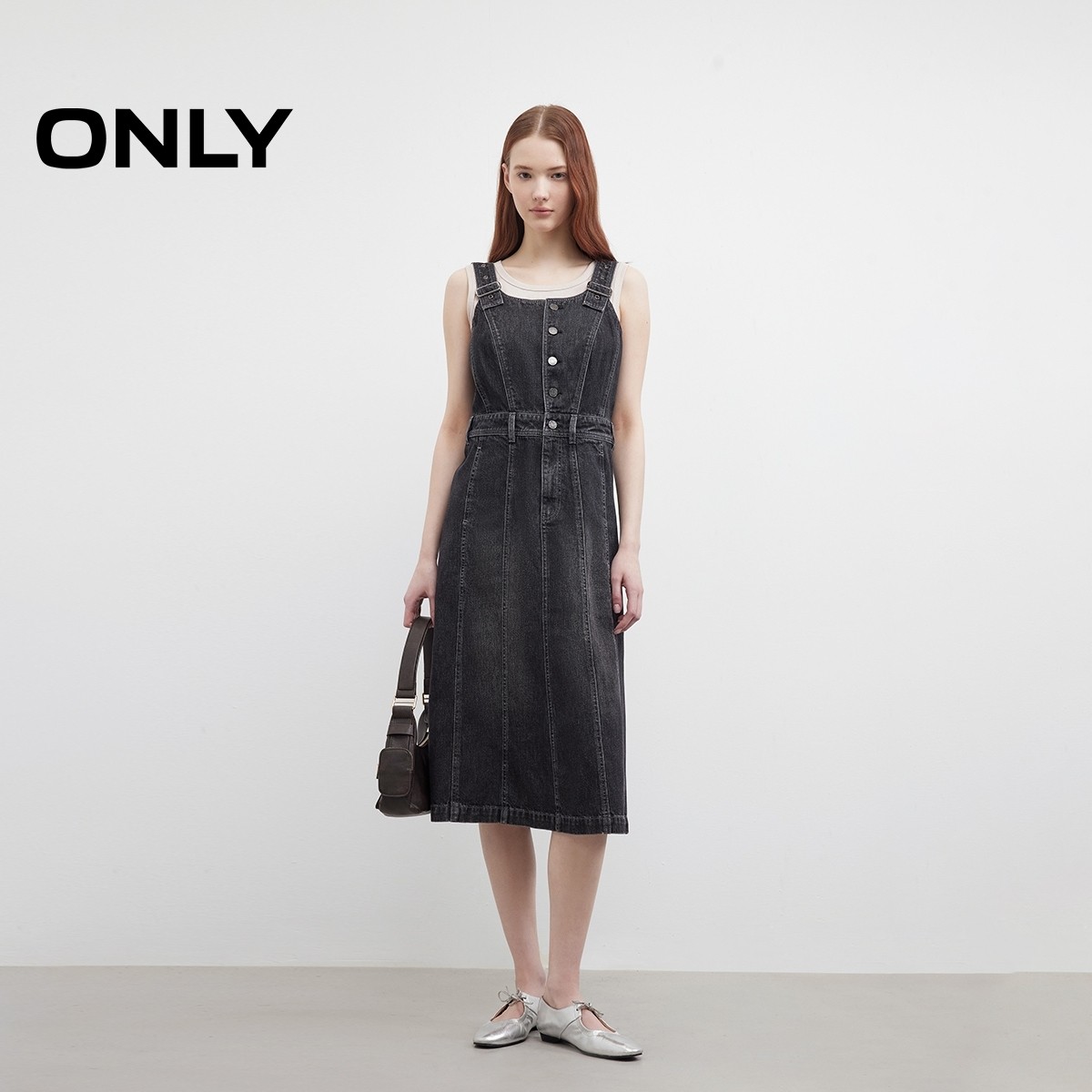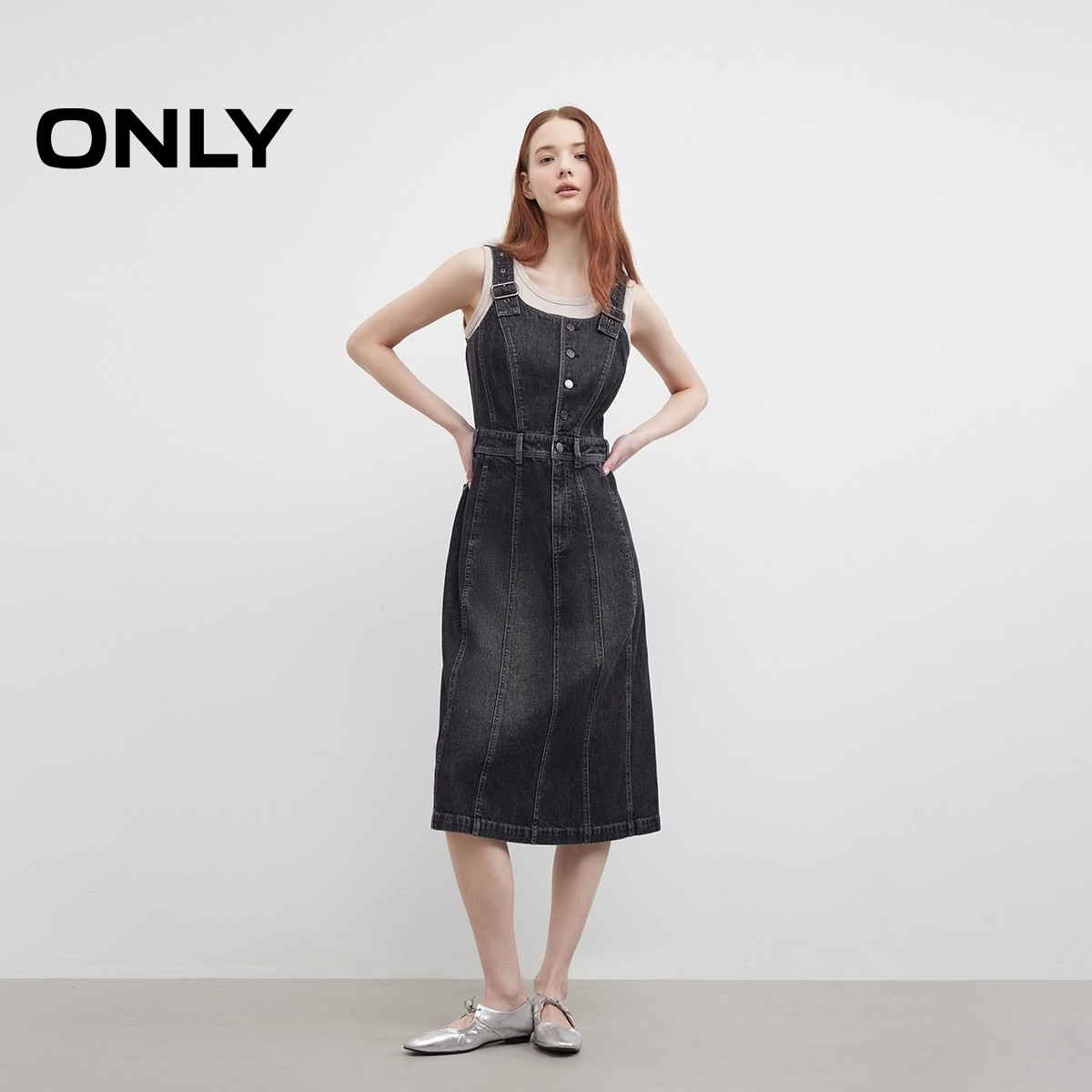ONLY2025秋冬新款莱赛尔可调节宽肩带休闲开衩背带裙牛仔连衣裙女