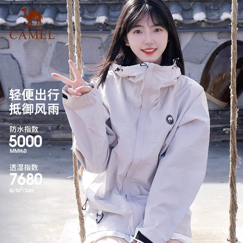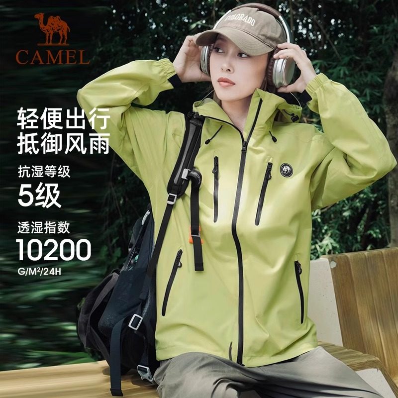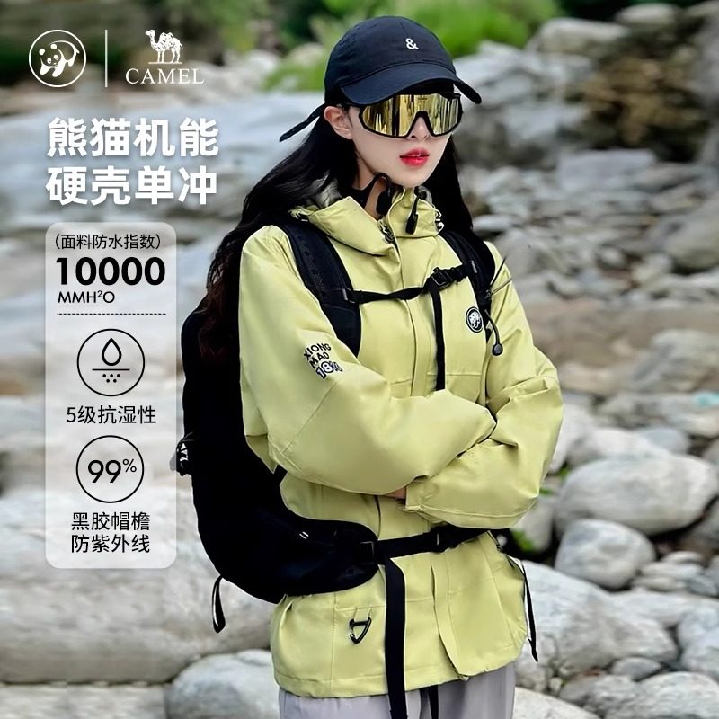 骆驼联名熊猫户外硬壳单层冲锋衣男女秋冬季新款防风防水夹克外套