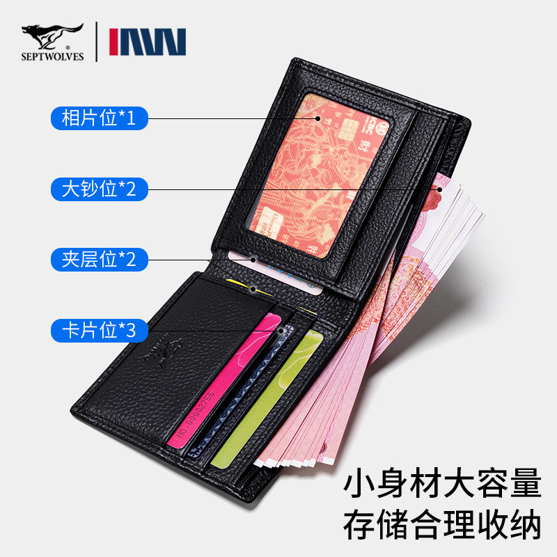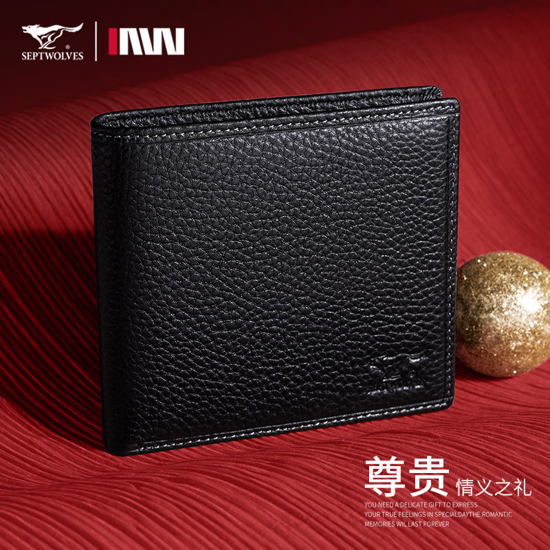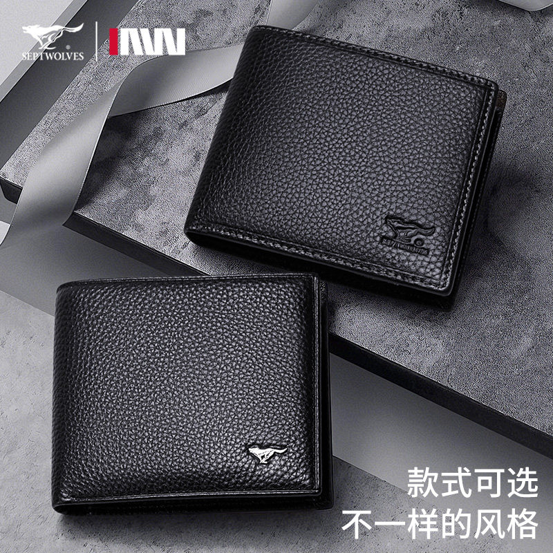 七匹狼钱包男士2026新款真皮短款牛皮皮夹生日礼物送男友爸爸钱夹