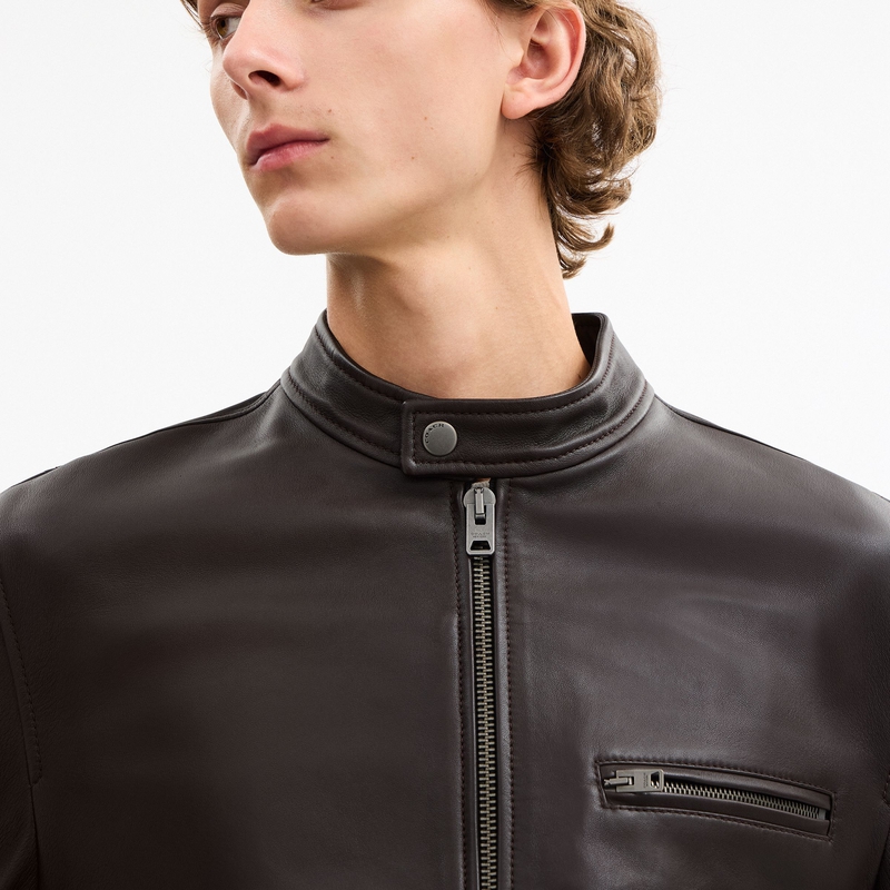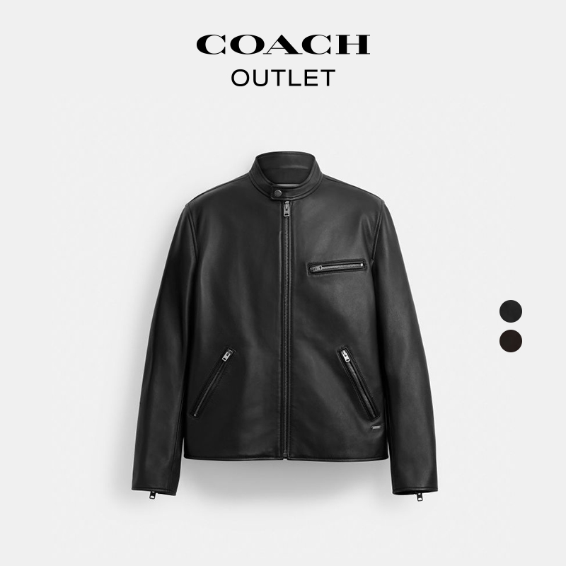 【新品】COACH/蔻驰奥莱男士真皮羊皮革赛车夹克外套高级感设计感