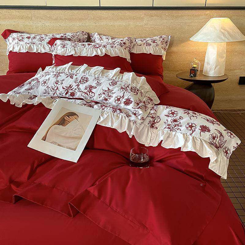 轻法式结婚肤水棉四洗件套被套公主床单遥伊供应奢床上亲用品新婚