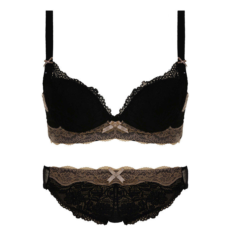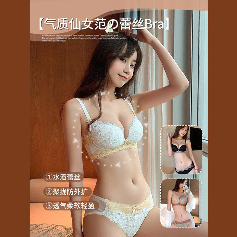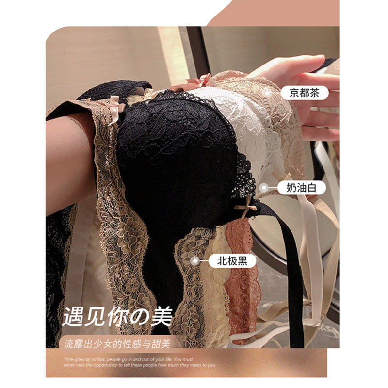 VALINGNSL塑型内衣女小胸聚拢无钢圈性感蕾丝调整型女士文胸套装