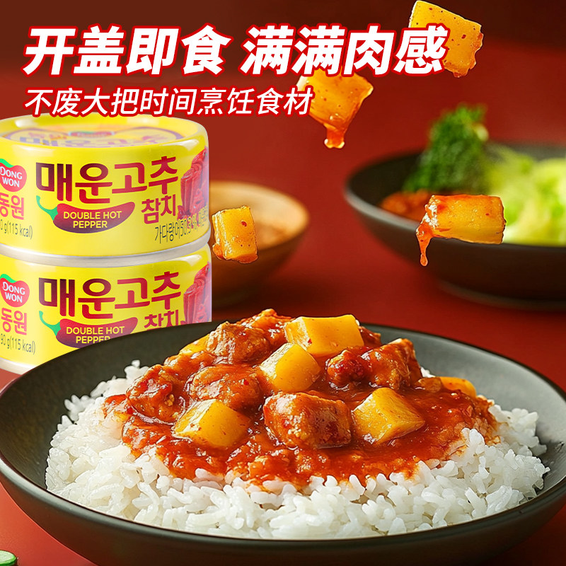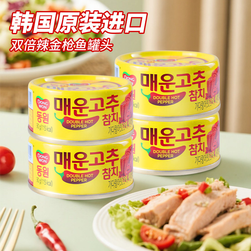 东远辣金枪鱼罐头双倍辣火辣味吞拿鱼韩国鱼肉dongwon油浸水浸鱼