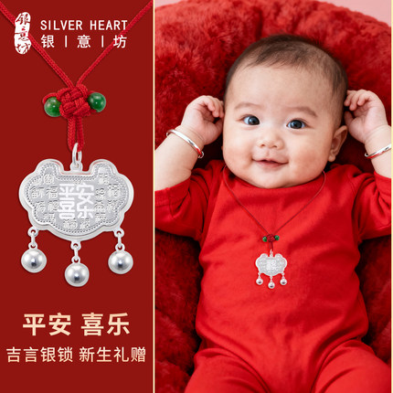 新生婴儿银锁999纯银宝宝出生见面礼平安锁银吊坠长命锁满月礼物