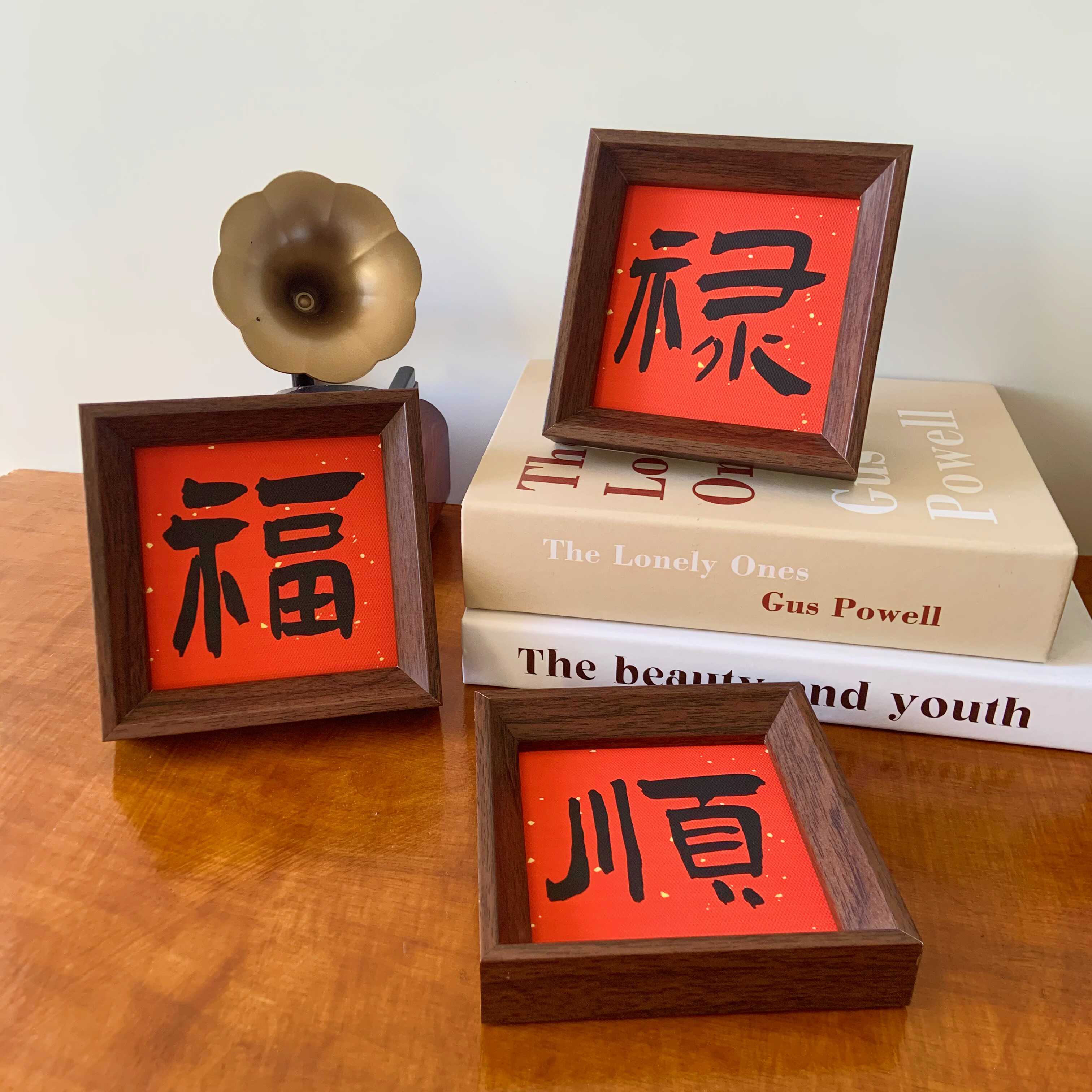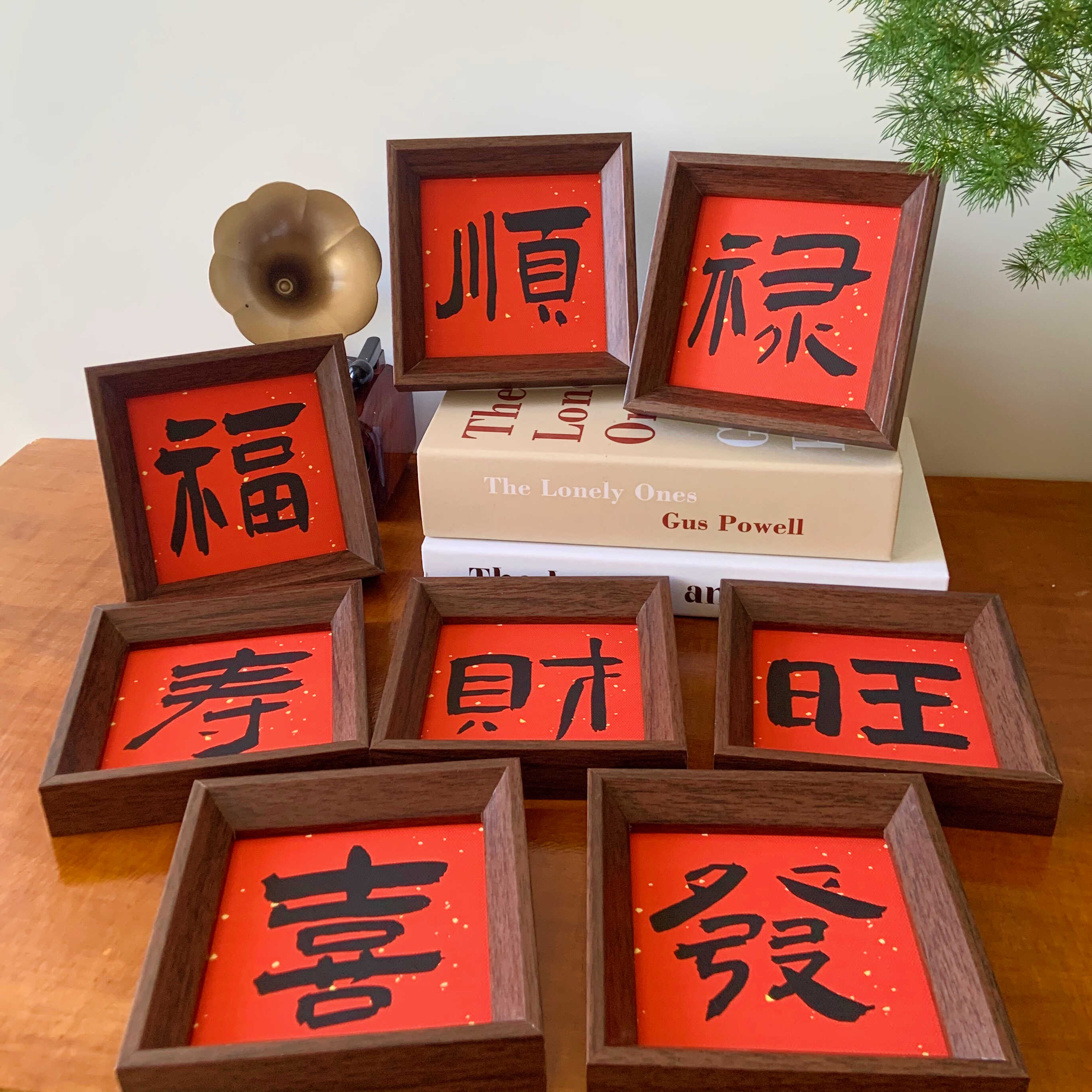 新中式喜庆风书法相框画桌面摆件 福禄寿摆台客厅家居装饰品礼物