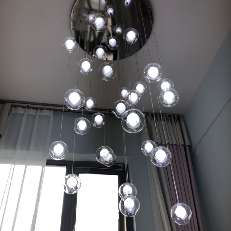 2021新款公寓小复式楼吊灯挑高楼梯客厅餐厅店铺商用玻璃球长吊灯