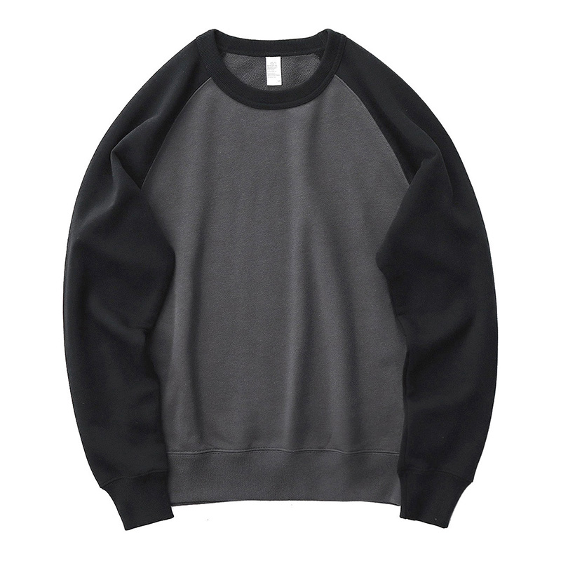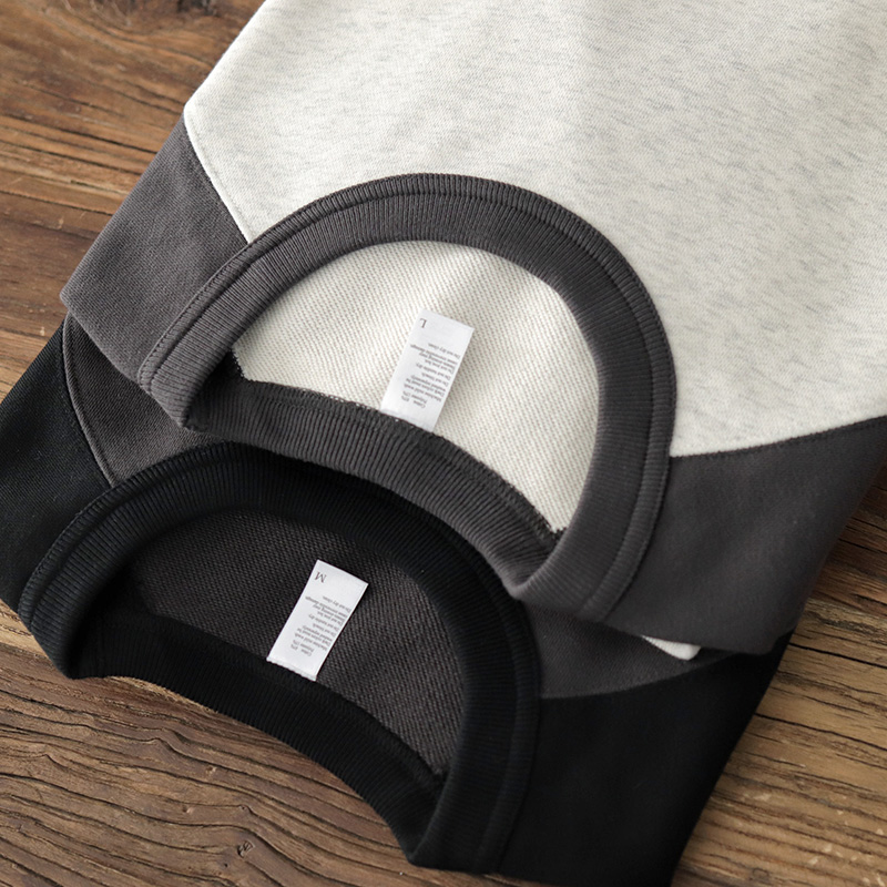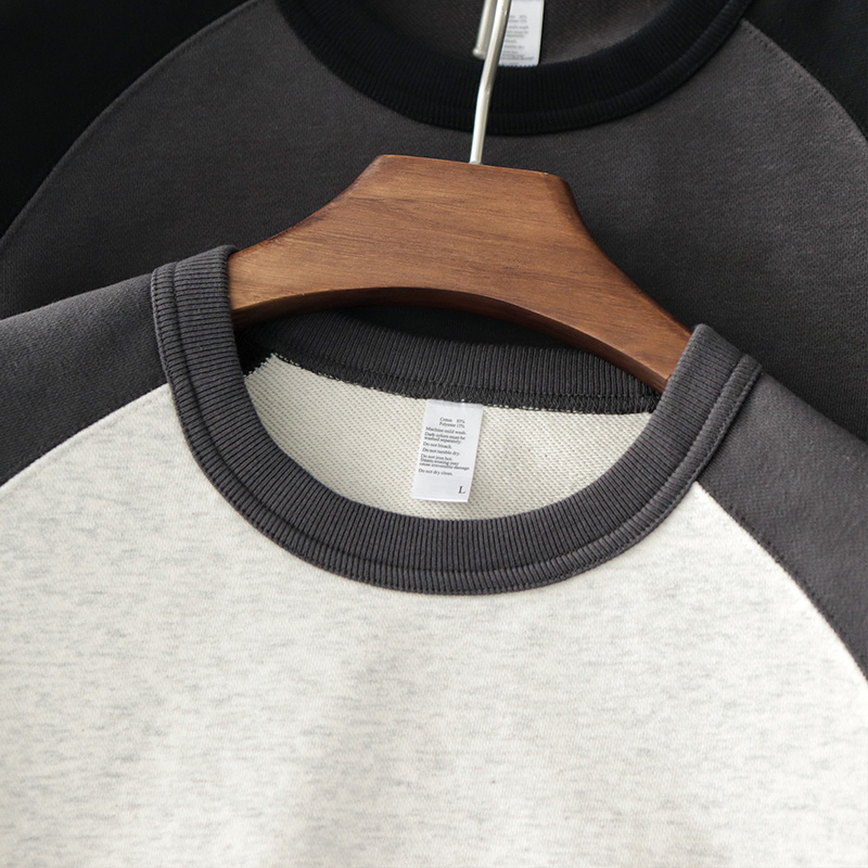 360G插肩拼接卫衣男阿美咔叽美式复古撞色毛圈针织上衣圆领运动衫