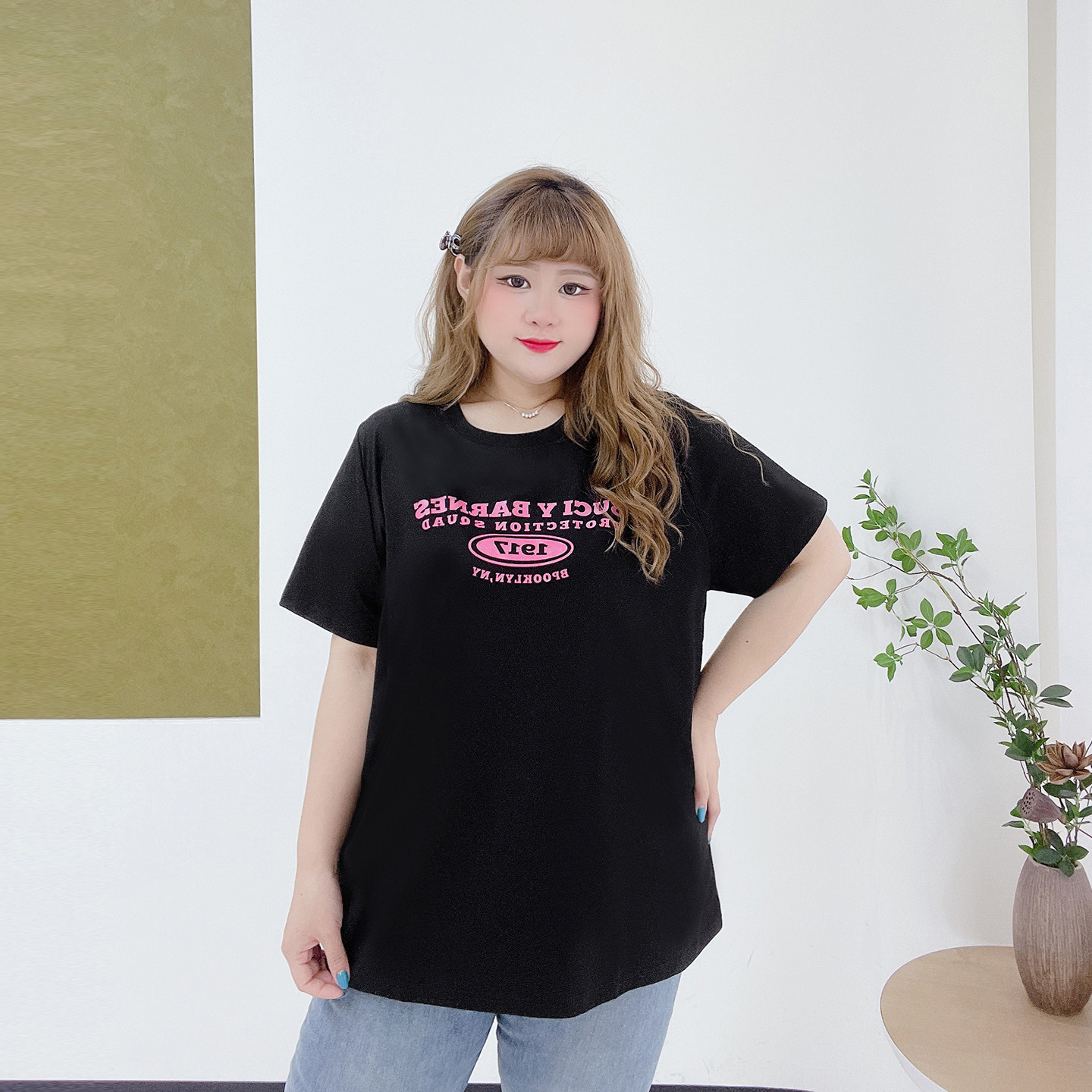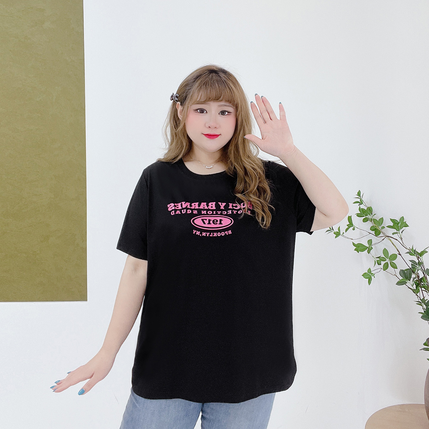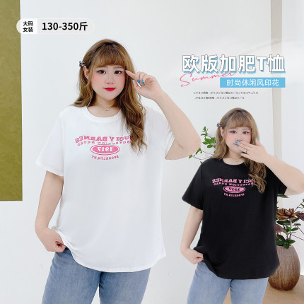 350斤显瘦美式高街圆领上衣潮胖莹莹大码女装夏季百搭短袖印花T恤